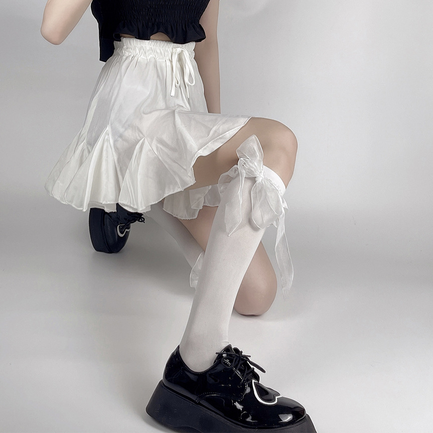 일본 소녀 오간자 리본 활 레이스 JK 종아리 양말 120d 벨벳 중반 종아리 양말 Lolita