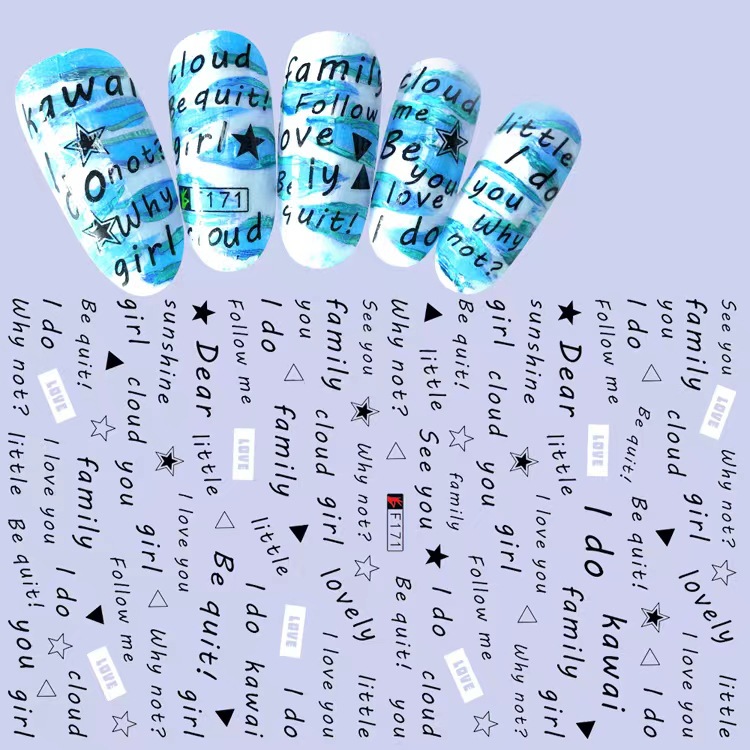2022 크로스 보더 네일 아트 모든 매치 컬러 레터 시리즈 새롭고 베테랑 공통 장식 텍스트 지속 및 확고한 데칼