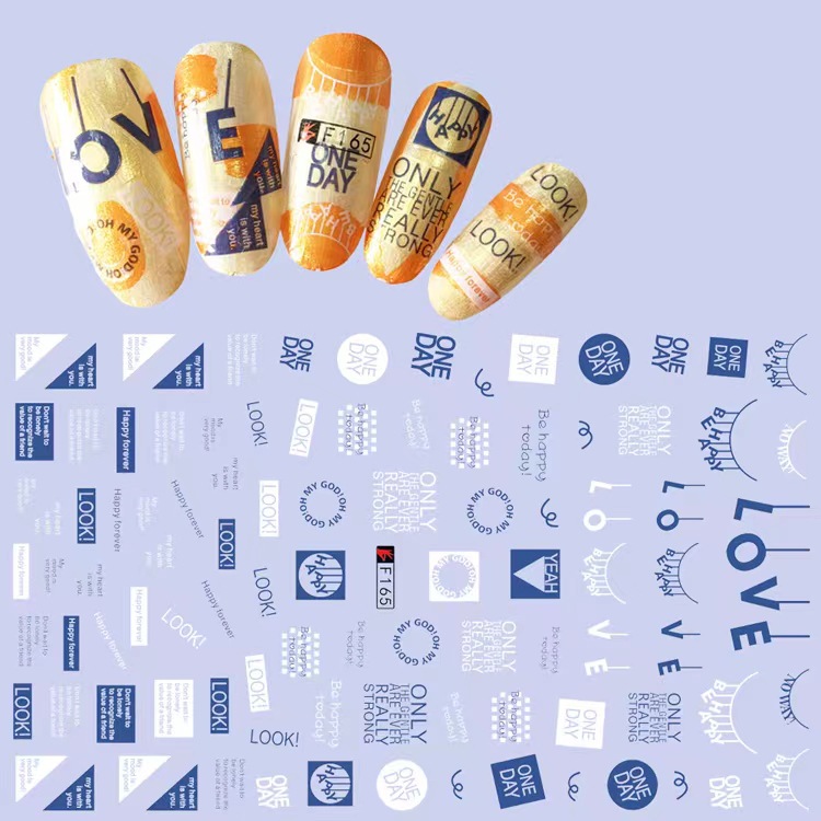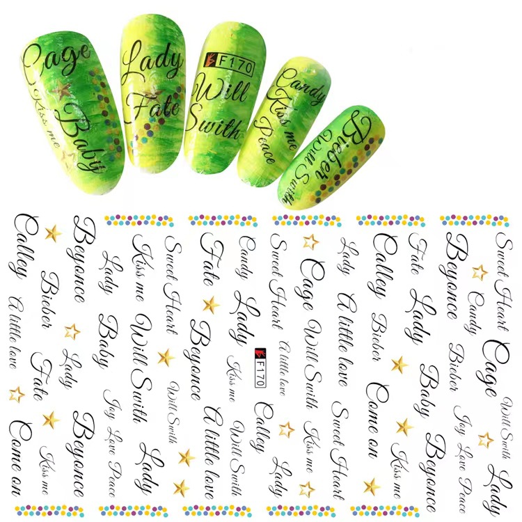 2022 크로스 보더 네일 아트 모든 매치 컬러 레터 시리즈 새롭고 베테랑 공통 장식 텍스트 지속 및 확고한 데칼스토어 가기