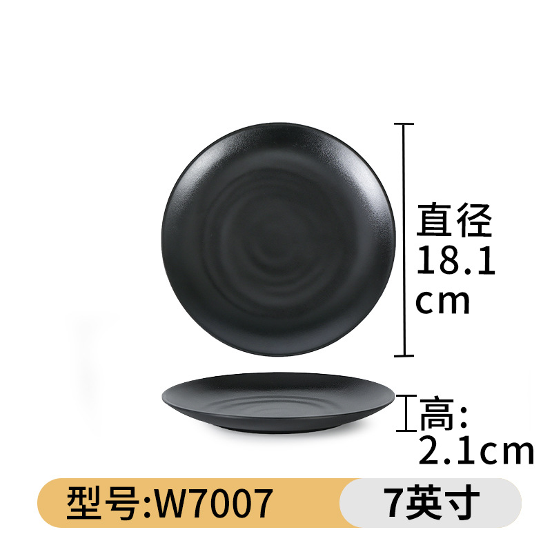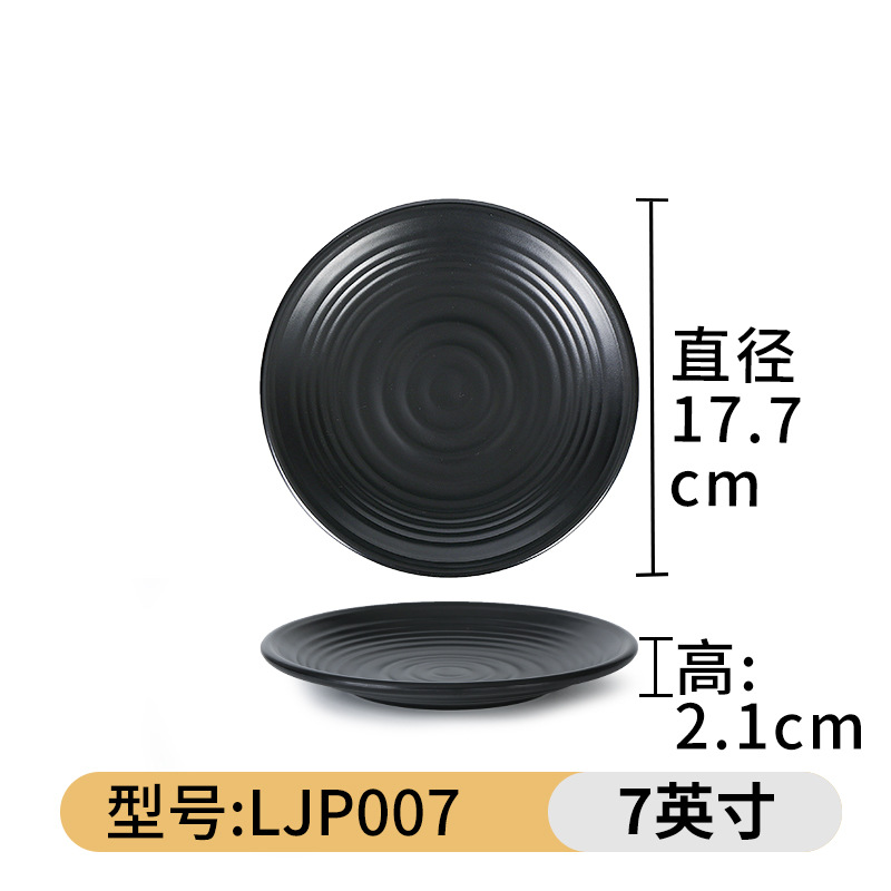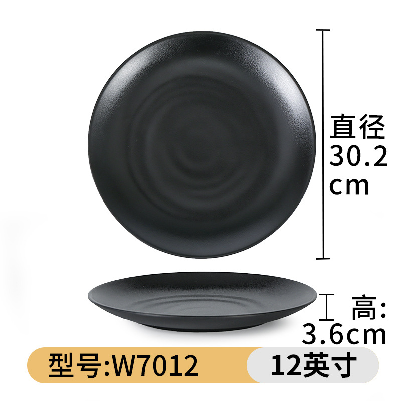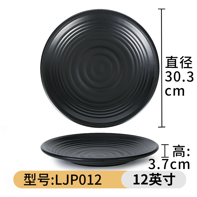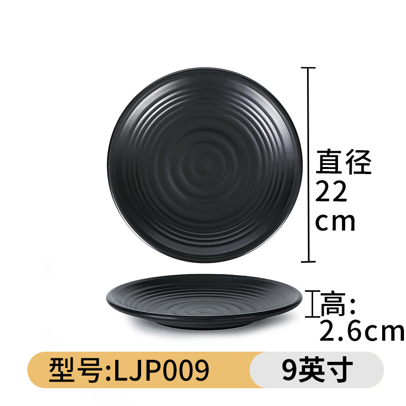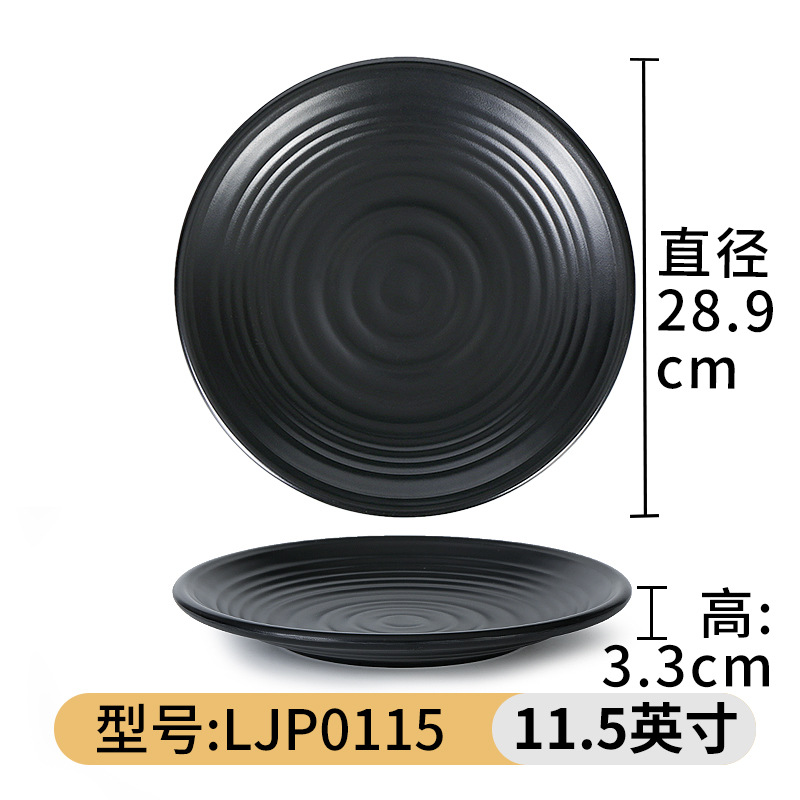 검은 멜라민 접시 냄비 바베큐 레스토랑 요리 접시 뼈 접시 모조 도자기 플라스틱 원형 접시 밥 접시 상업용 식기스토어 가기