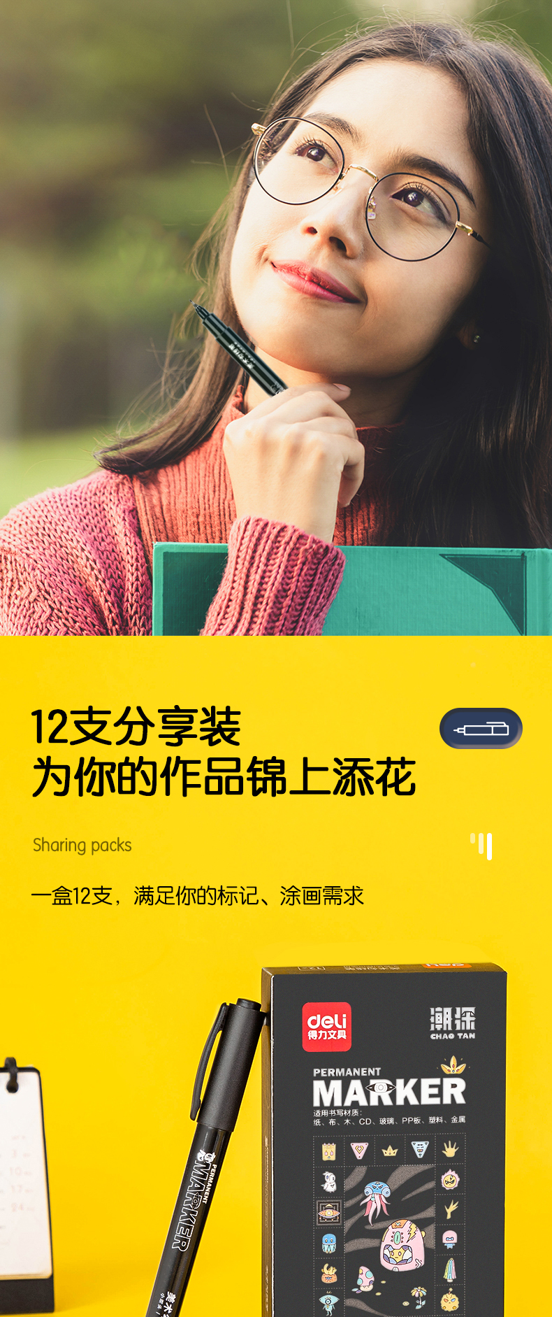 델리 S563 아트 후크 펜 검은 색 두껍고 얇은 양두 드로잉 펜 마킹 펜 어린이 그림 학생용 아트스토어 가기