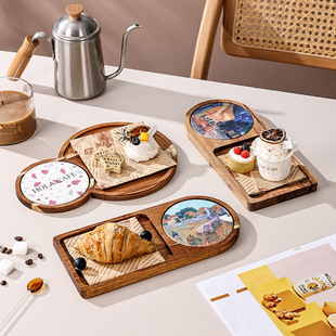 创意ins甜品相思木拍照木托盘 下午茶点心面包摆盘搭配吸水瓷片垫