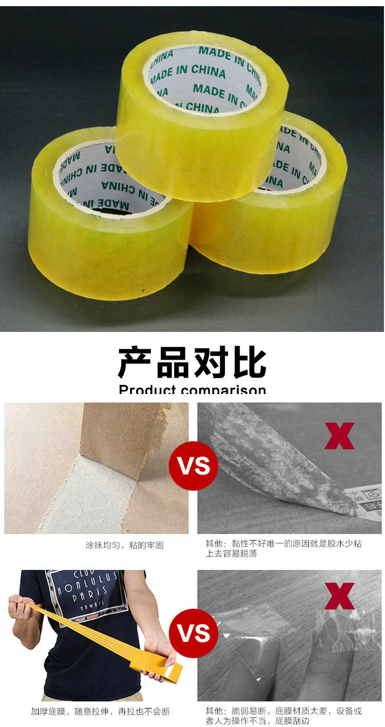 60 개의 넓은 투명 테이프 포장 및 밀봉 테이프 노란색 접착 종이 대형 롤 밀봉 접착 종이 특급 물류 포장 테이프