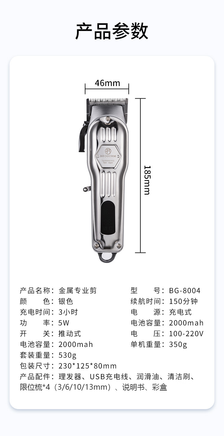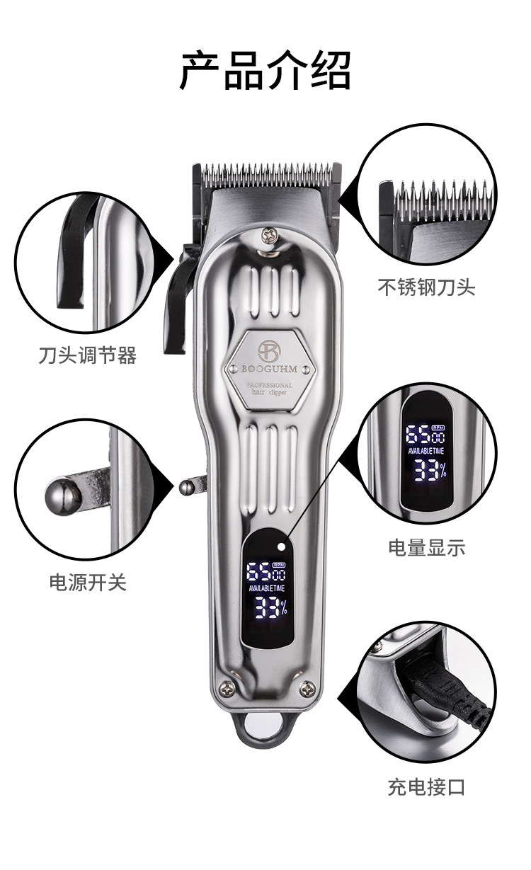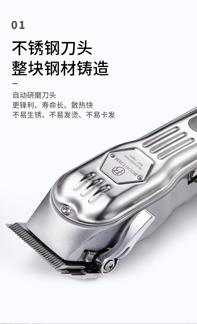 사용자 정의 헤어 클리퍼 로고 패턴 금속 전문 이발 복고풍 오일 헤드 조각 전기 클리퍼 세트