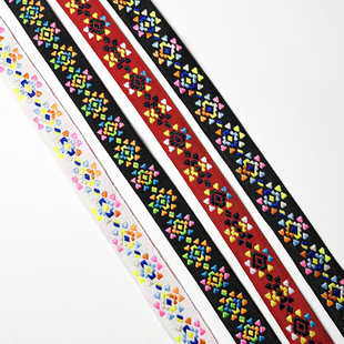 厂家供应民族织带家居软饰装饰窗帘花边风俗彩色织带电脑提花花边