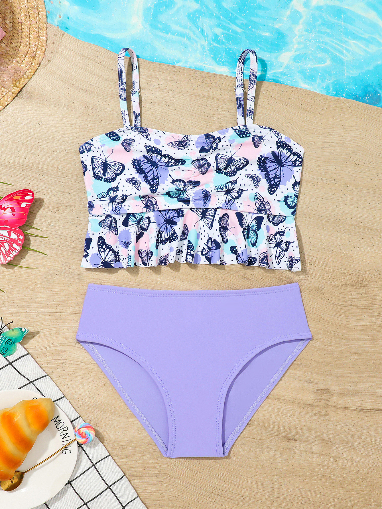 어린이 신작 여아 수영복 대외 무역 아마존 여아 스플릿 수영복 중대형 아동 프린트 비키니 수영복