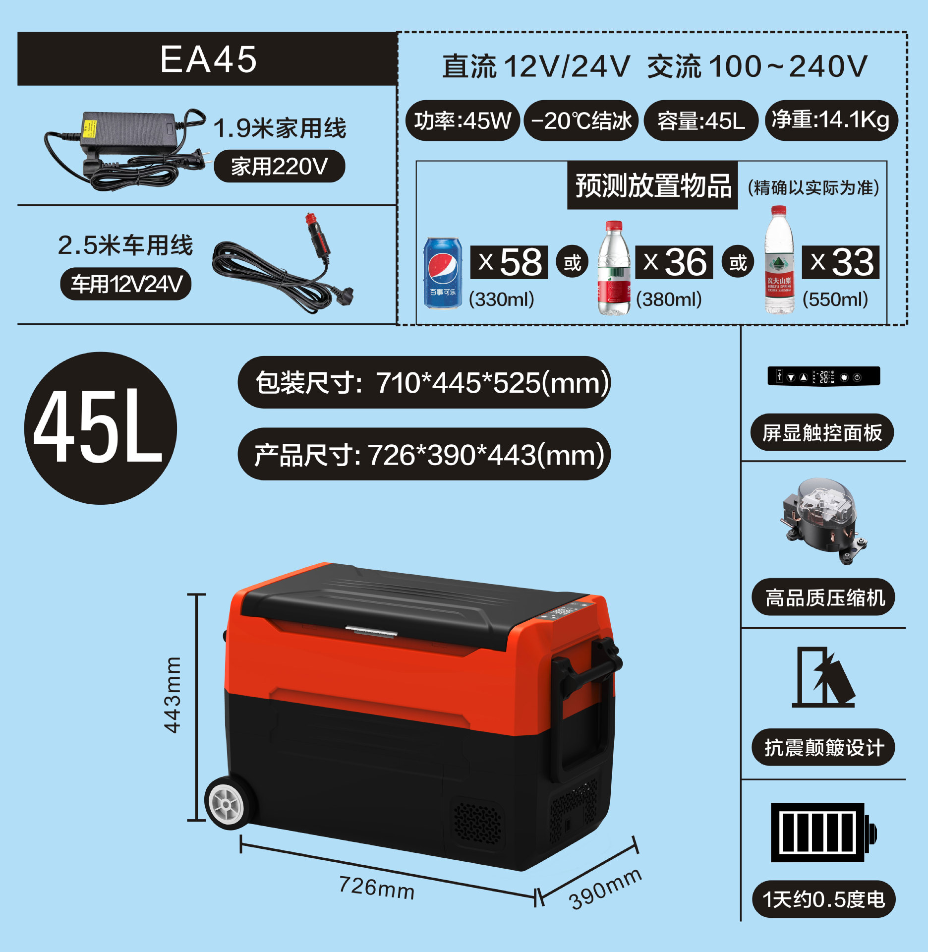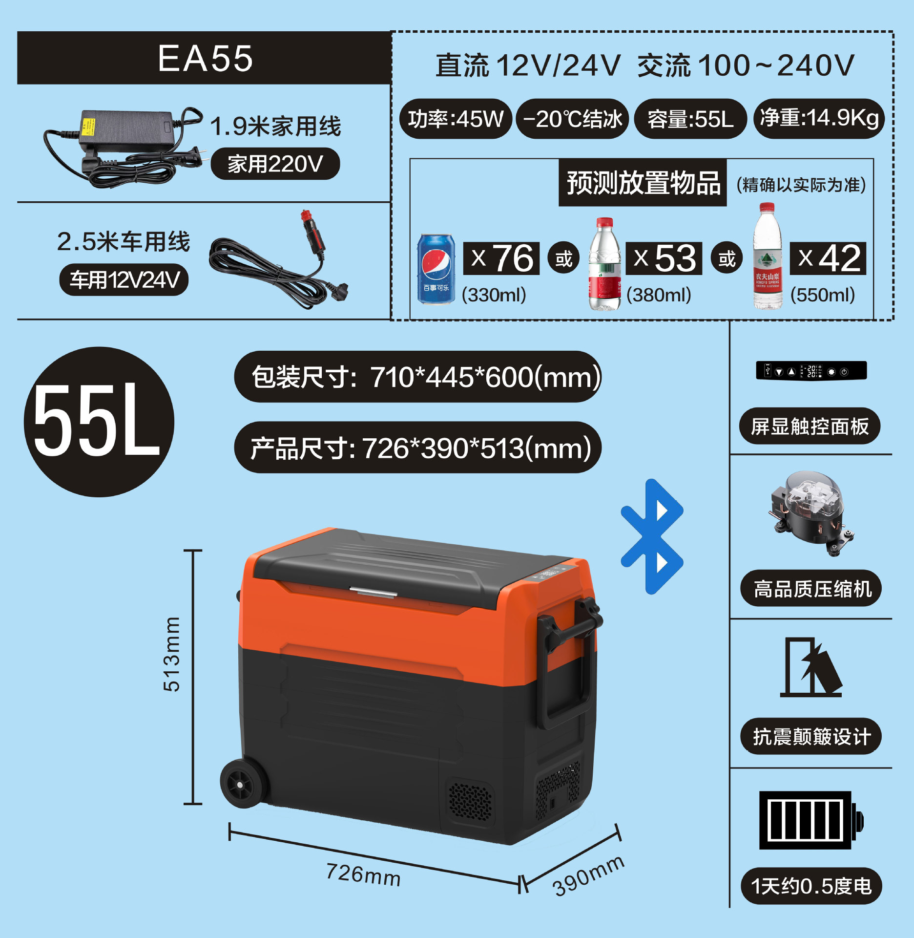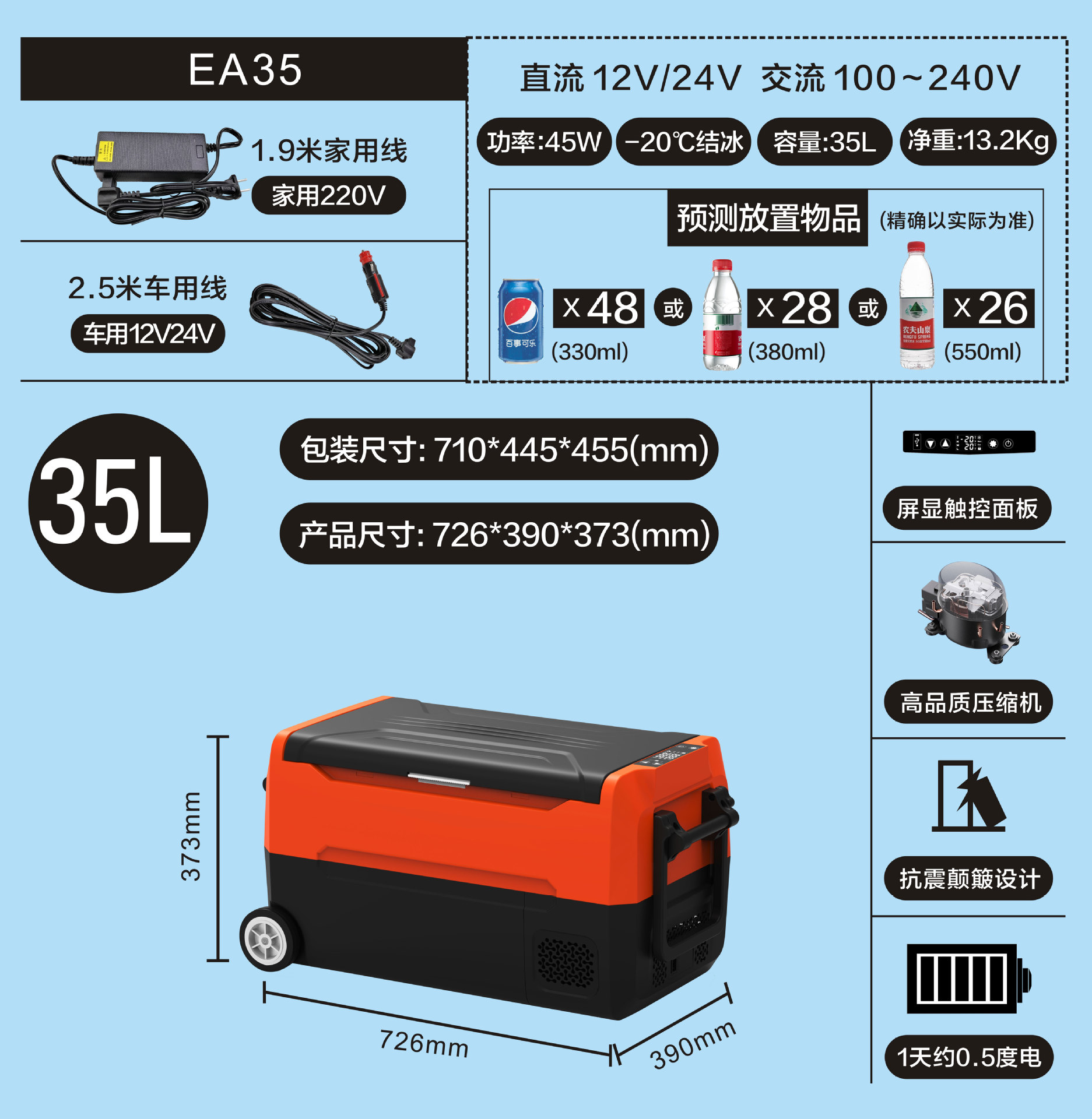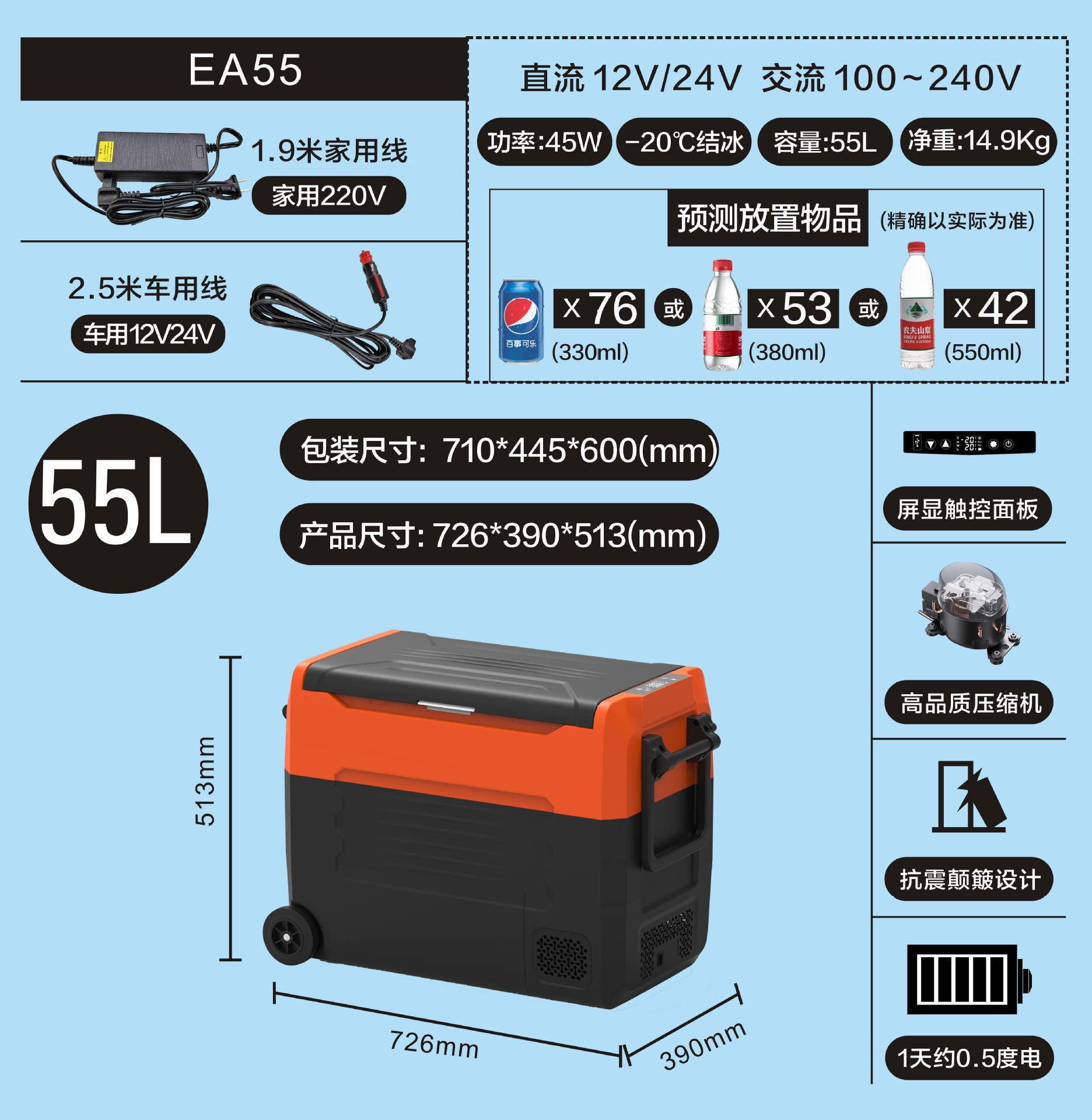 컴프레서 차량용 미니 냉장고 35-55L≤35데시벨 이중용도 12v24v 대용량 차량용스토어 가기