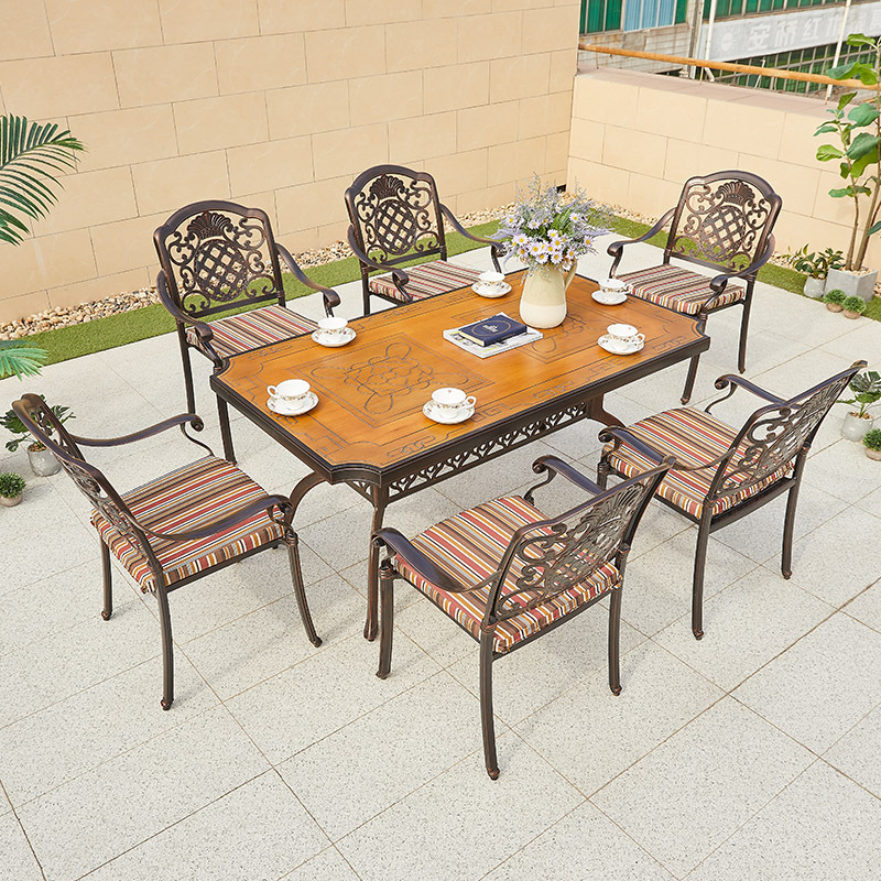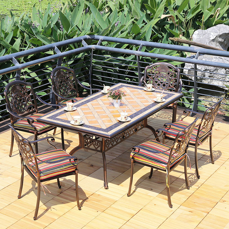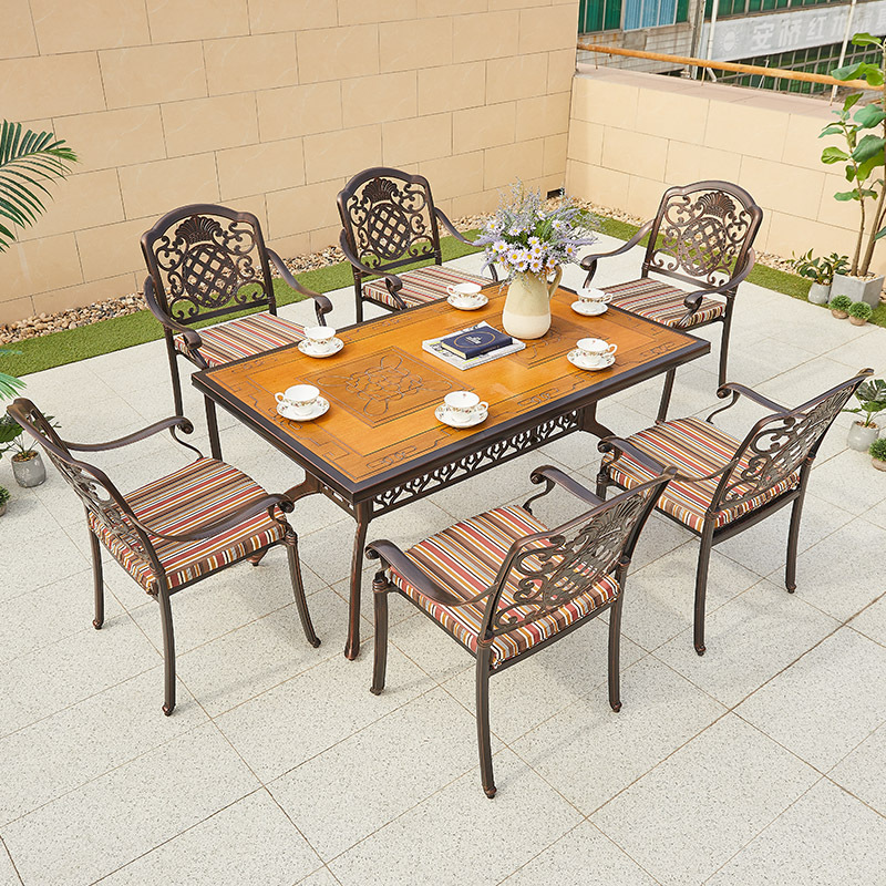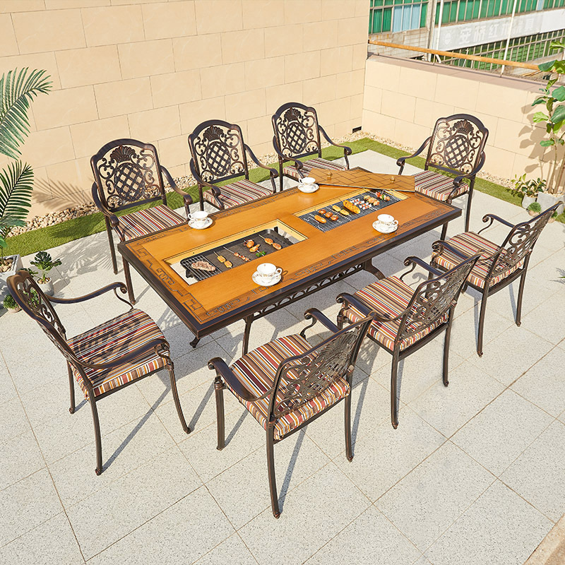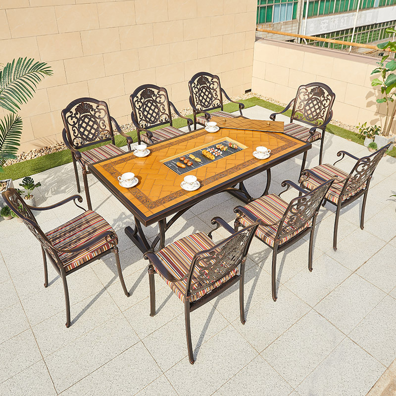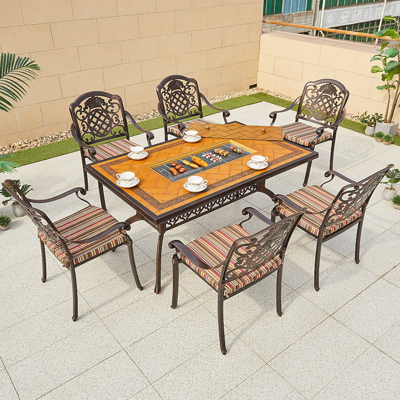 • 조합 14:6 의자 + 188*98 * H75 알루미늄 테두리 세라믹 타일 전기 베이킹 테이블