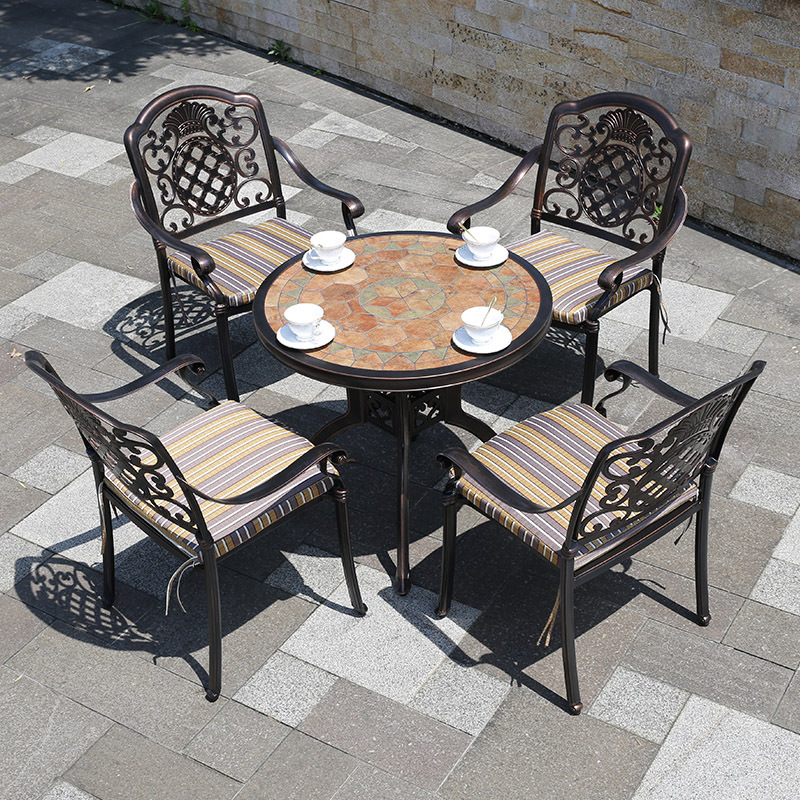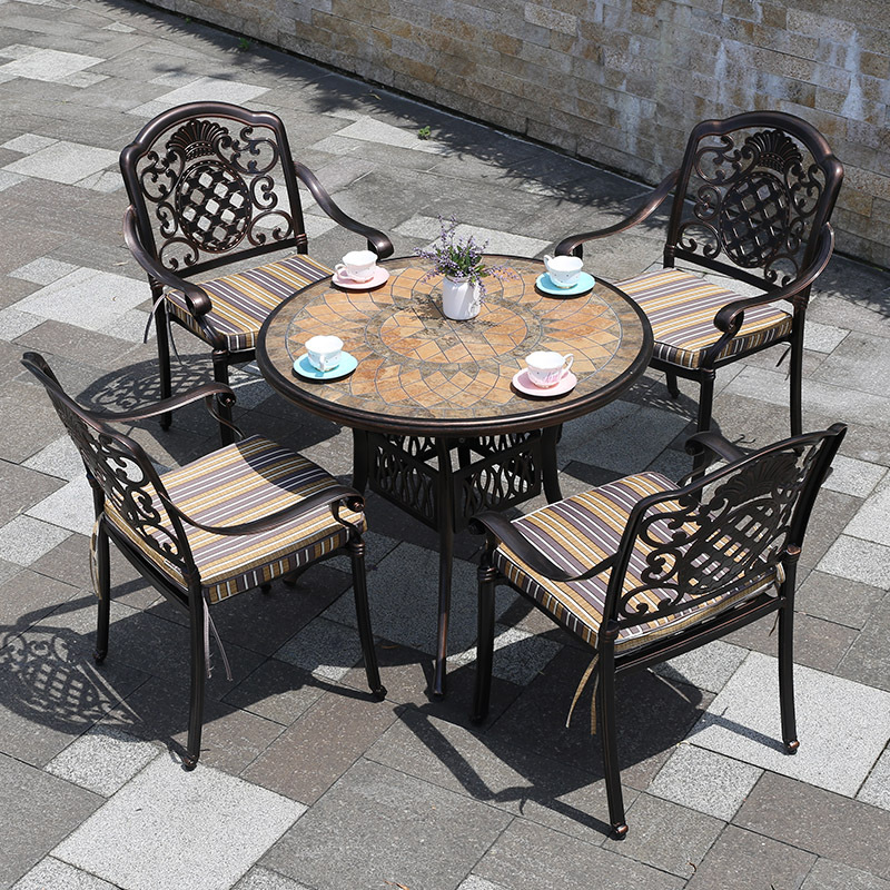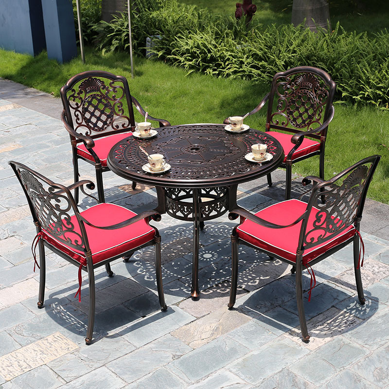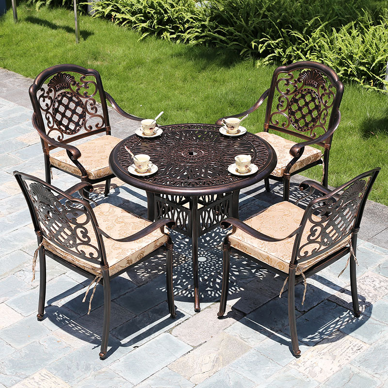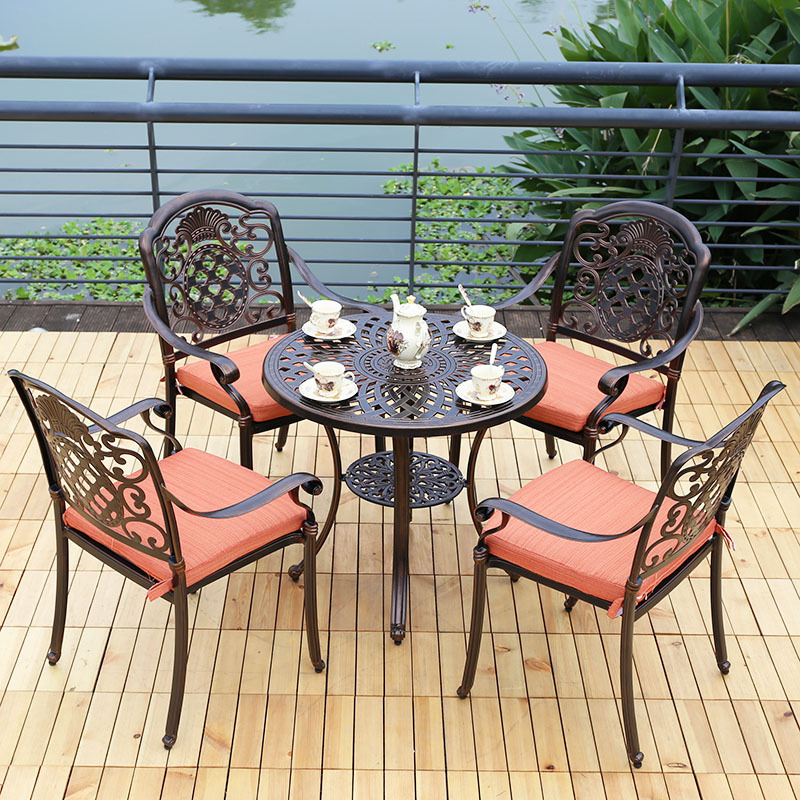 야외 캐스트 알루미늄 테이블과 의자 5 종 세트 발코니 빌라 레저 테이블과 의자 안뜰 철 테이블과 의자 야외 테라스 가구스토어 가기
