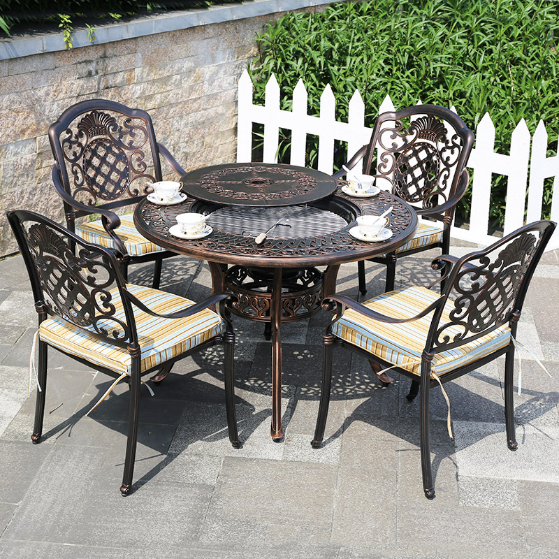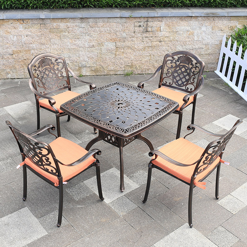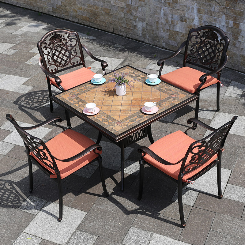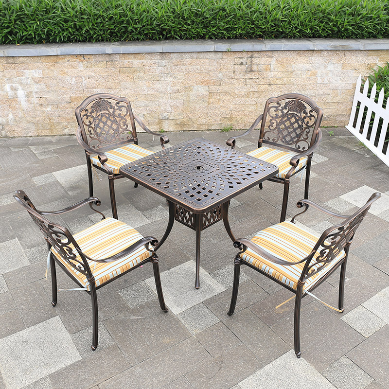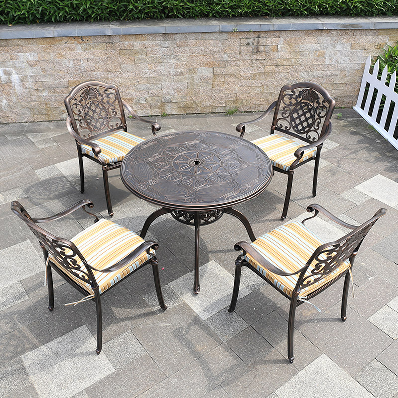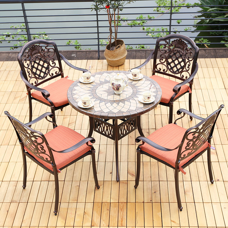 야외 캐스트 알루미늄 테이블과 의자 5 종 세트 발코니 빌라 레저 테이블과 의자 안뜰 철 테이블과 의자 야외 테라스 가구스토어 가기