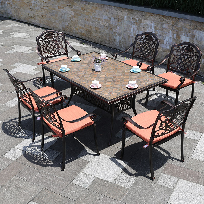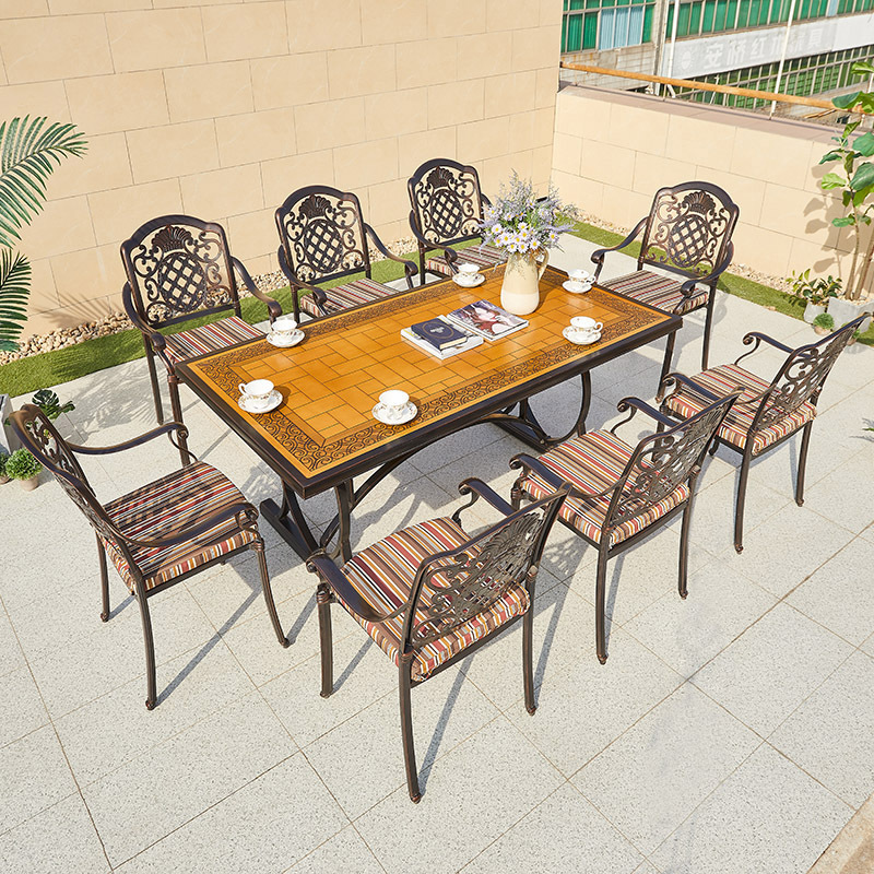 • 조합 15:6 의자 + 188*98 * H75 오렌지 타일 테이블