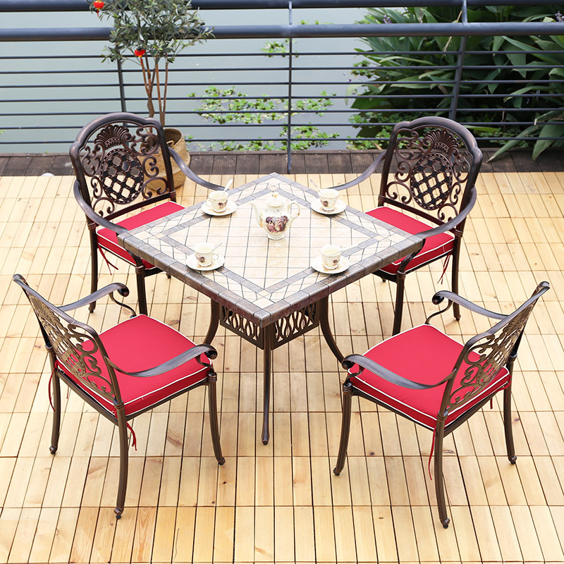 • 조합 5:4 의자 + 90*90 * H75 알루미늄 프레임 레드 타일 테이블