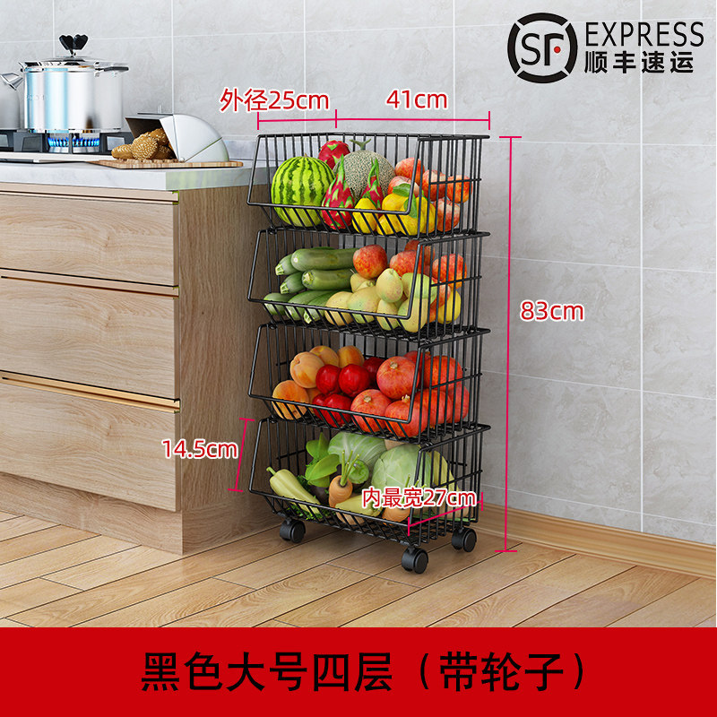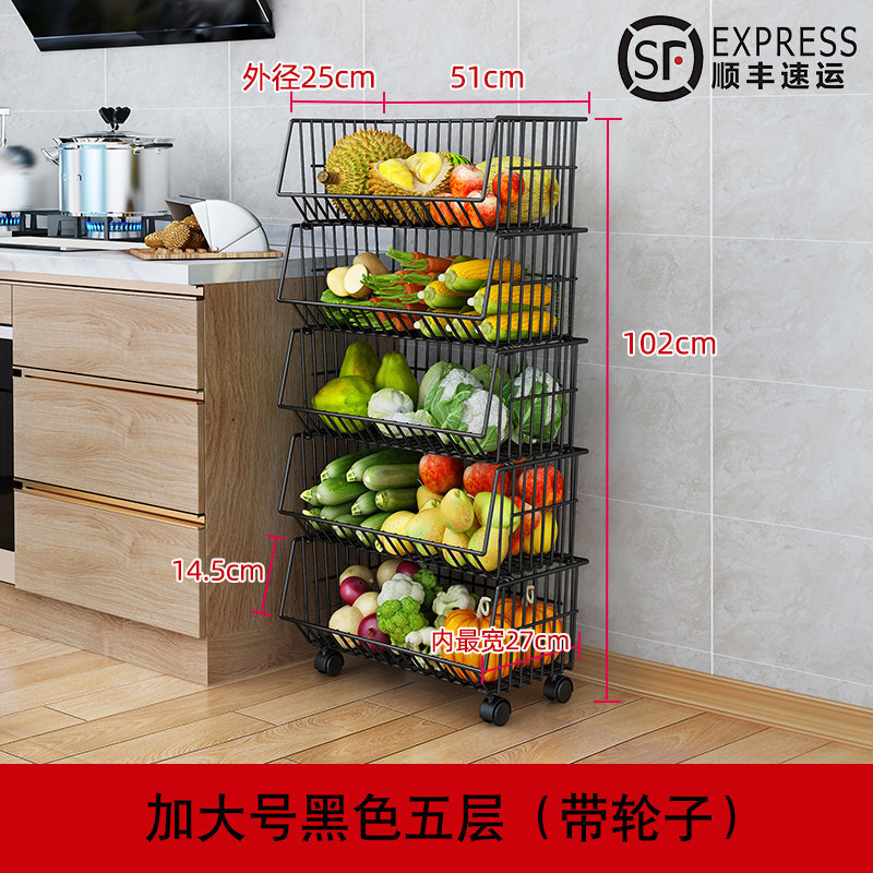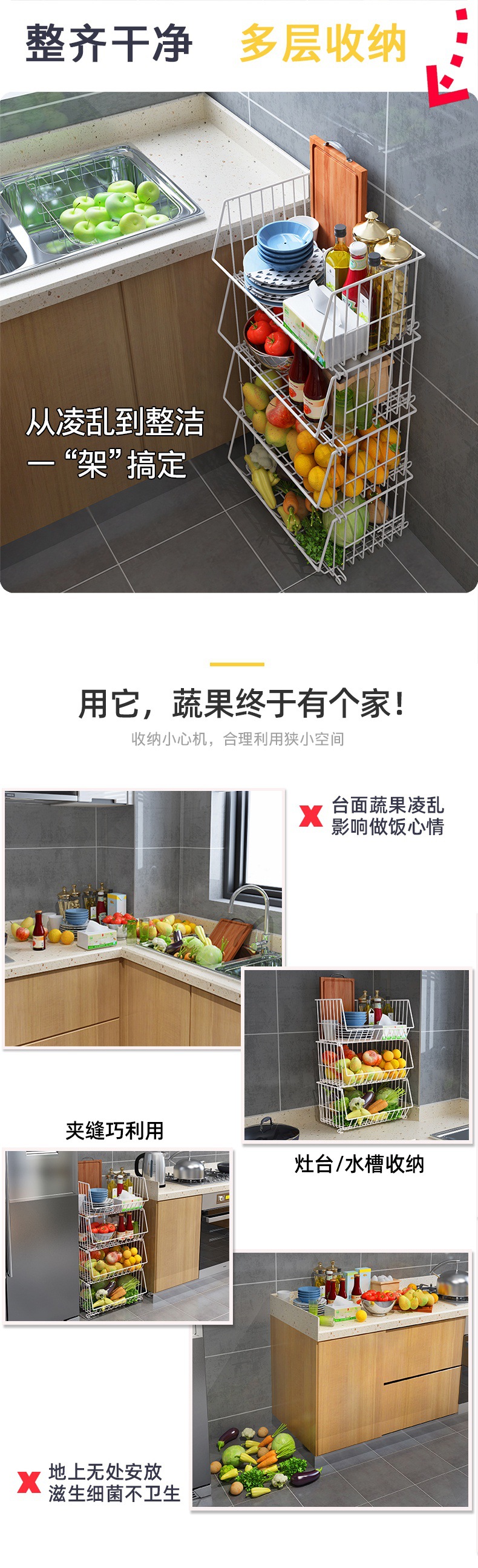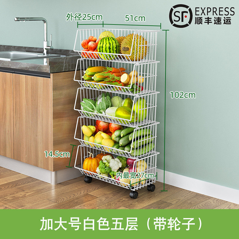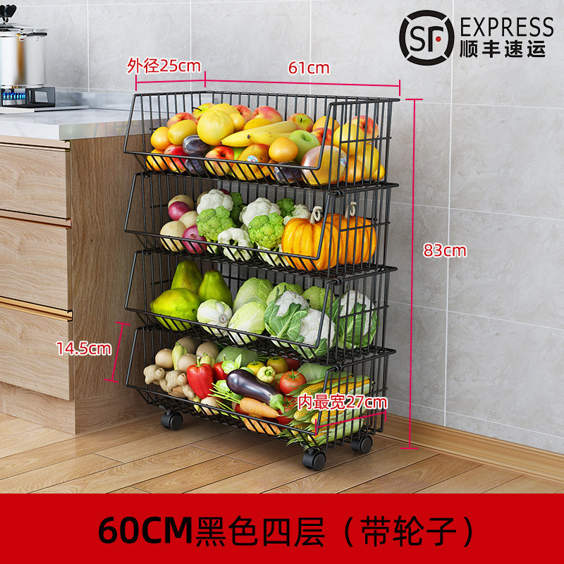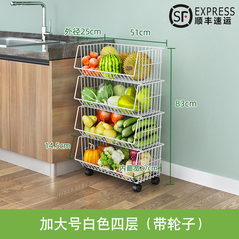 야채 및 야채 쇼핑을위한 주방 야채 보관 랙 보관 바구니 다층 가정용 보관 야채 랙 바닥 선반
