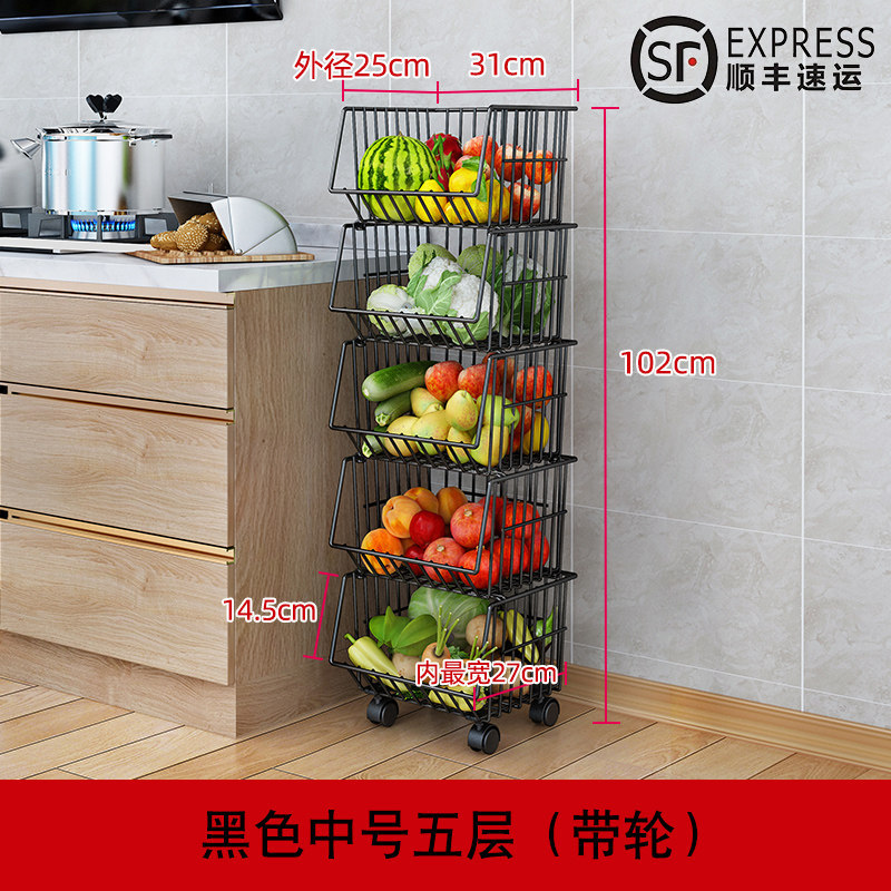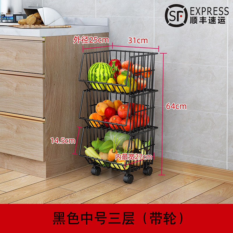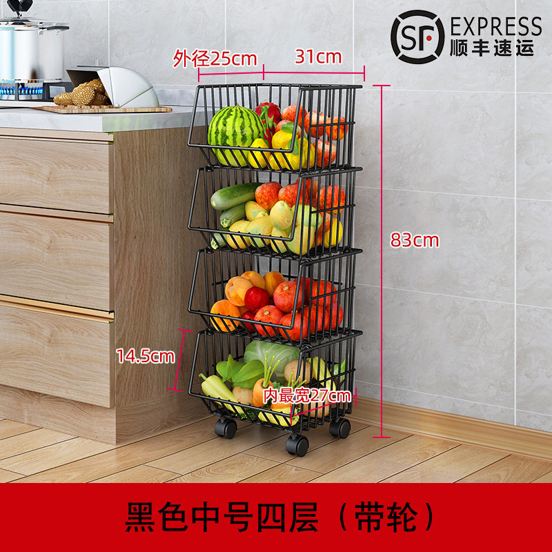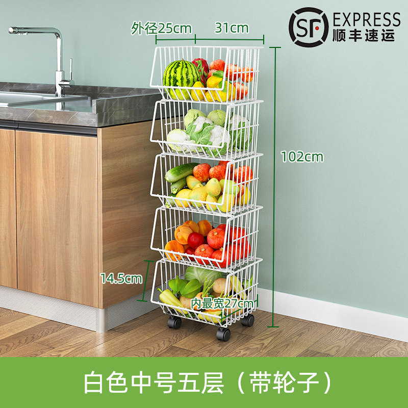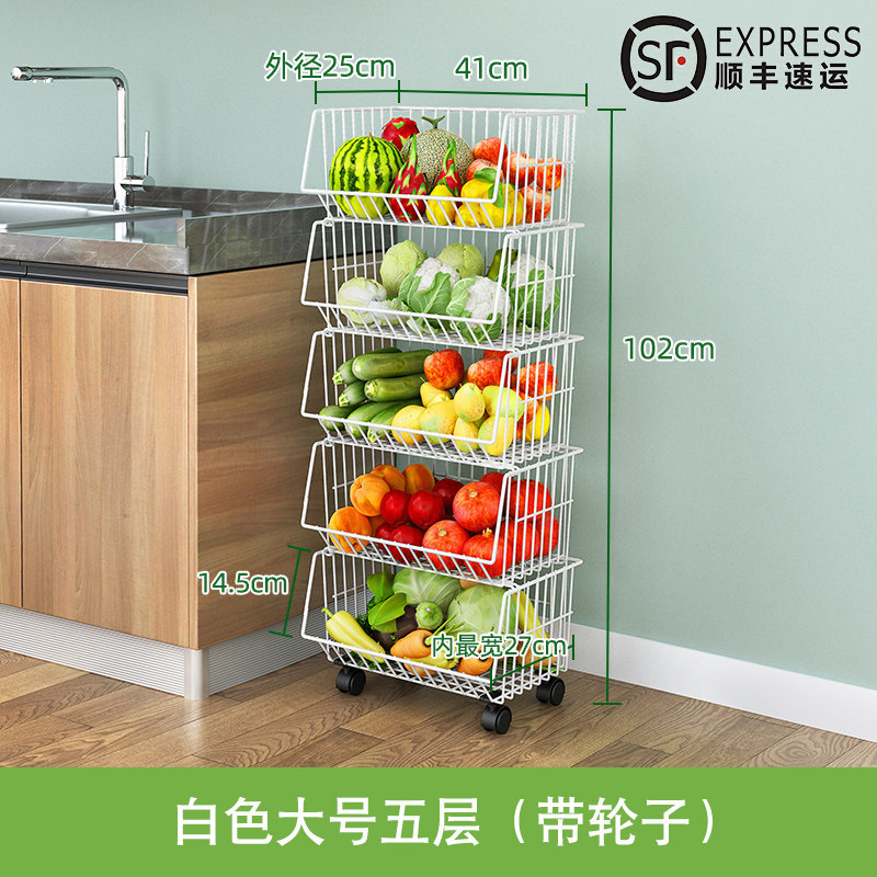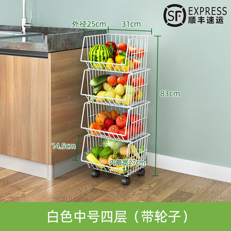 야채 및 야채 쇼핑을위한 주방 야채 보관 랙 보관 바구니 다층 가정용 보관 야채 랙 바닥 선반
