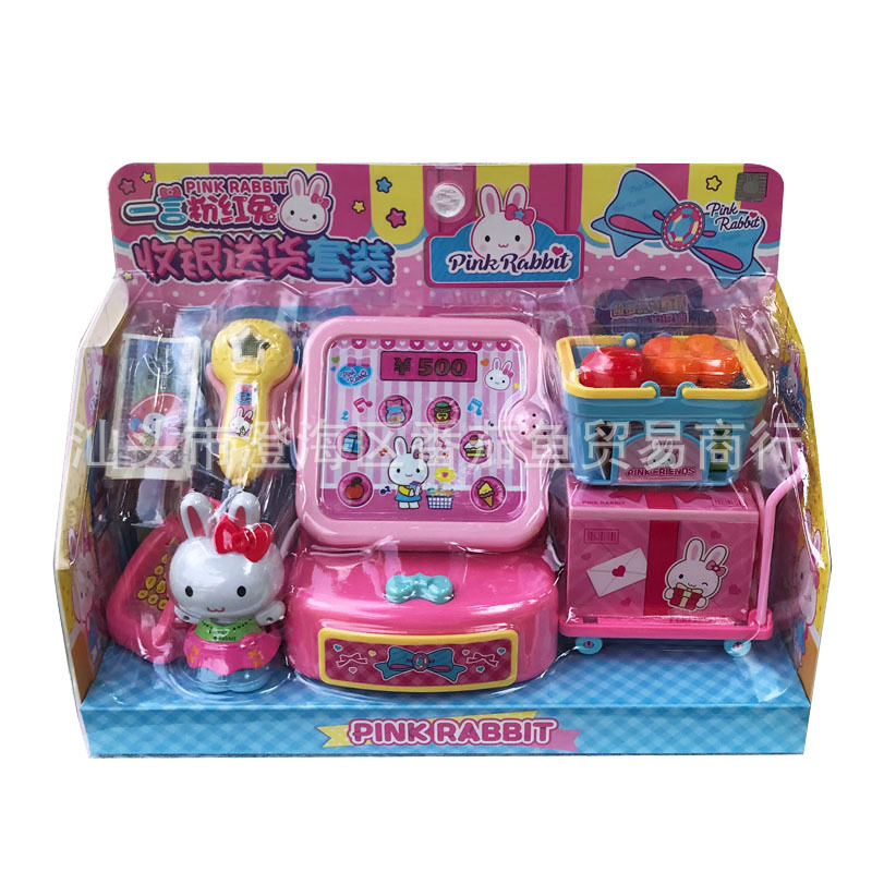 도매 원얀 핑크 토끼 소녀 놀이집 장난감 슈퍼마켓 계산대 배달 장면 계산기 세트 공급처