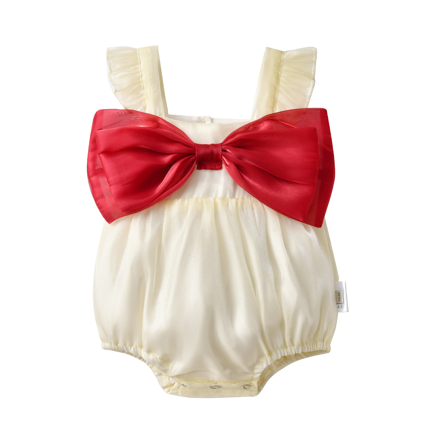 여름 새로운 아동복 0-1 세 아기 100 일 된 아기 점프 수트 롬퍼 빨간 활 삼각형