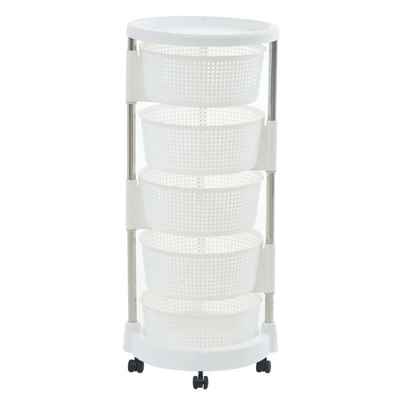 원형 회전식 분리형 야채 바구니 보관 랙 흰색 다층 바닥 주방 코너 보관 랙 보관 바구니