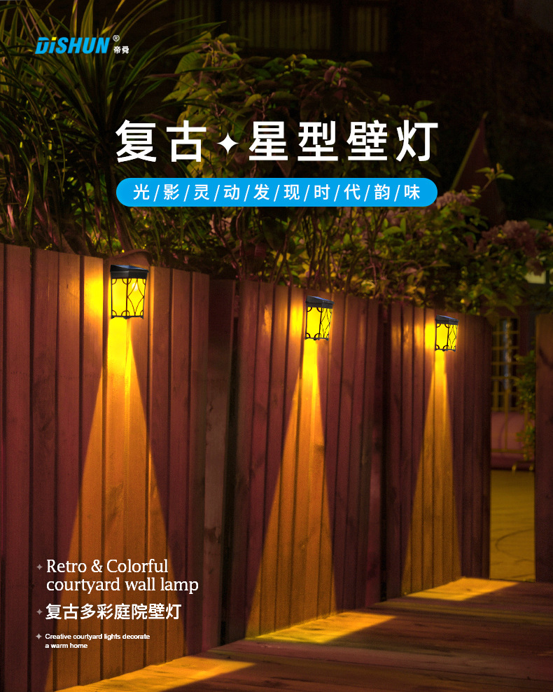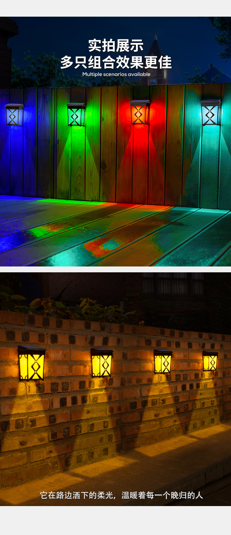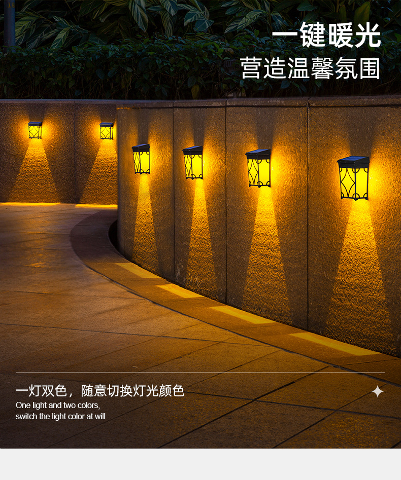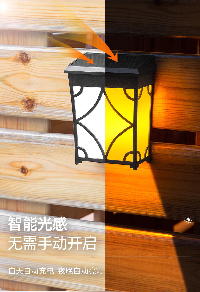 태양 벽 램프 홈 야외 벽 세척 빌라 복고풍 정원 풍경 울타리 장식 인덕션 LED 정원 조명