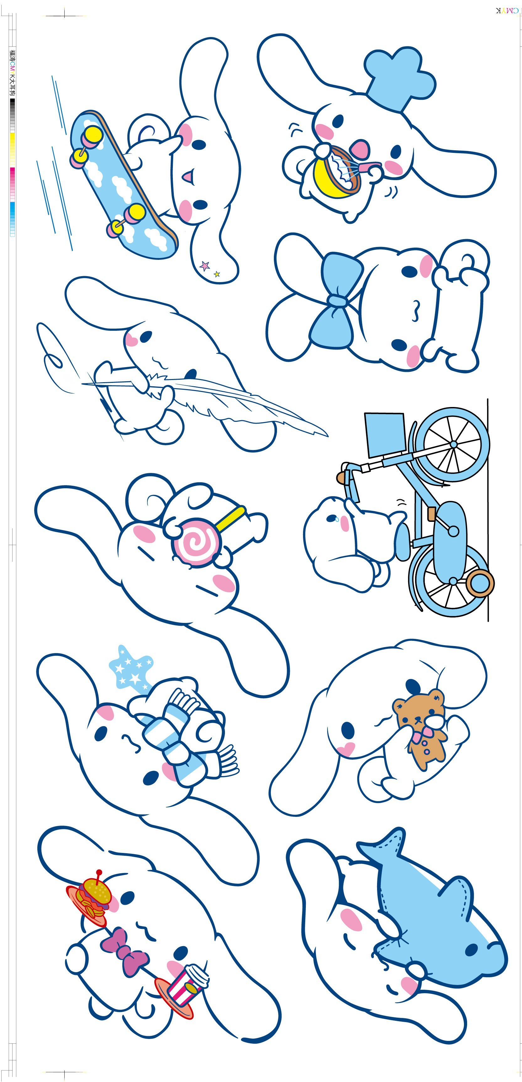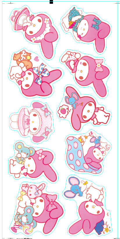 贴纸:一张含有10个不同图案,每个图都分别有模切外轮廓,图案平均宽度约5-7cm不等,