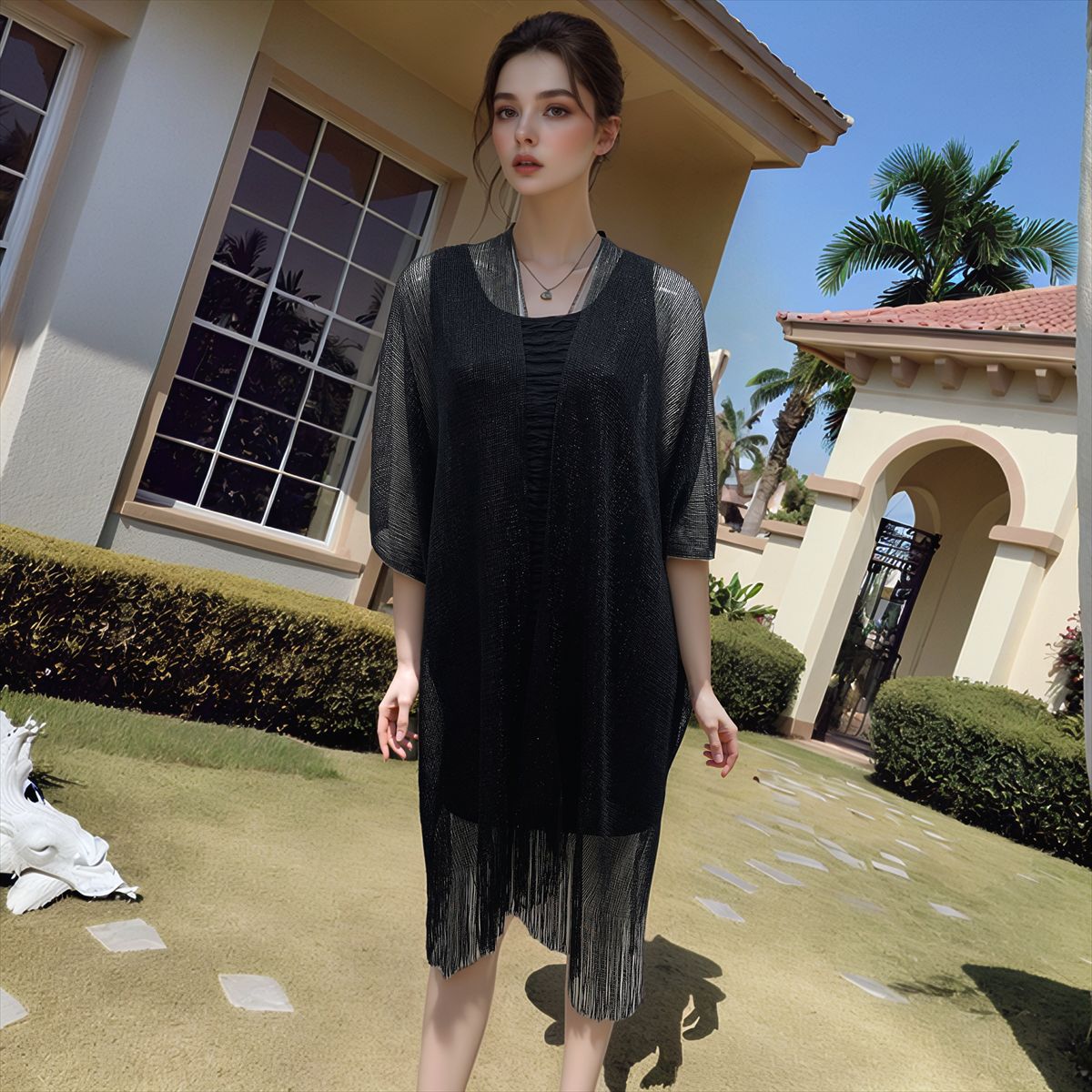 크로스 보더 폭발 플랫 타올 큰 숄 금과 실버 실크 소매 분할 태양 해변 의류 휴일 비키니 블라우스 태양 보호스토어 가기