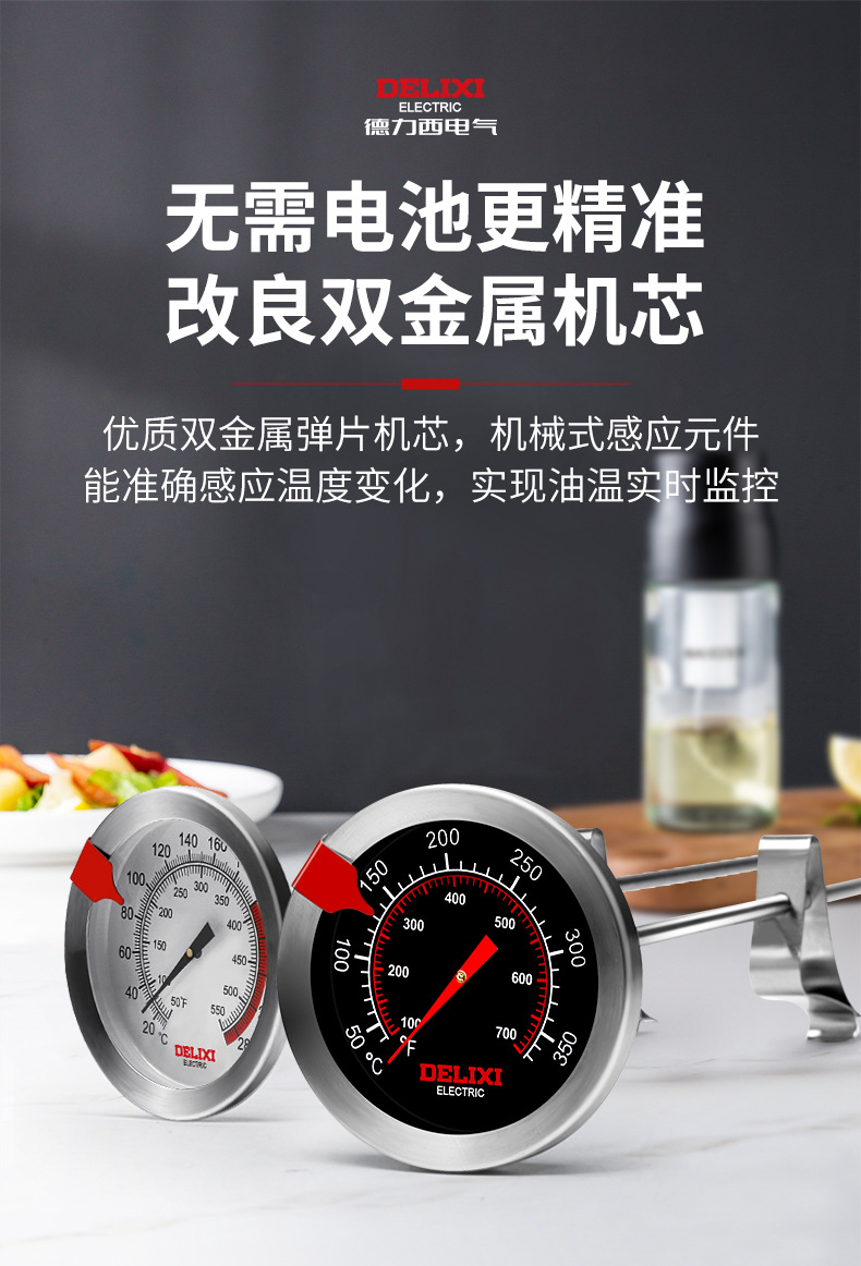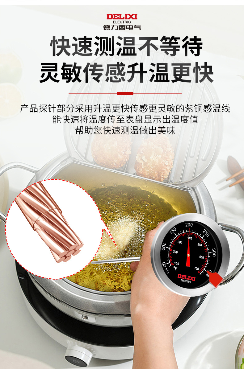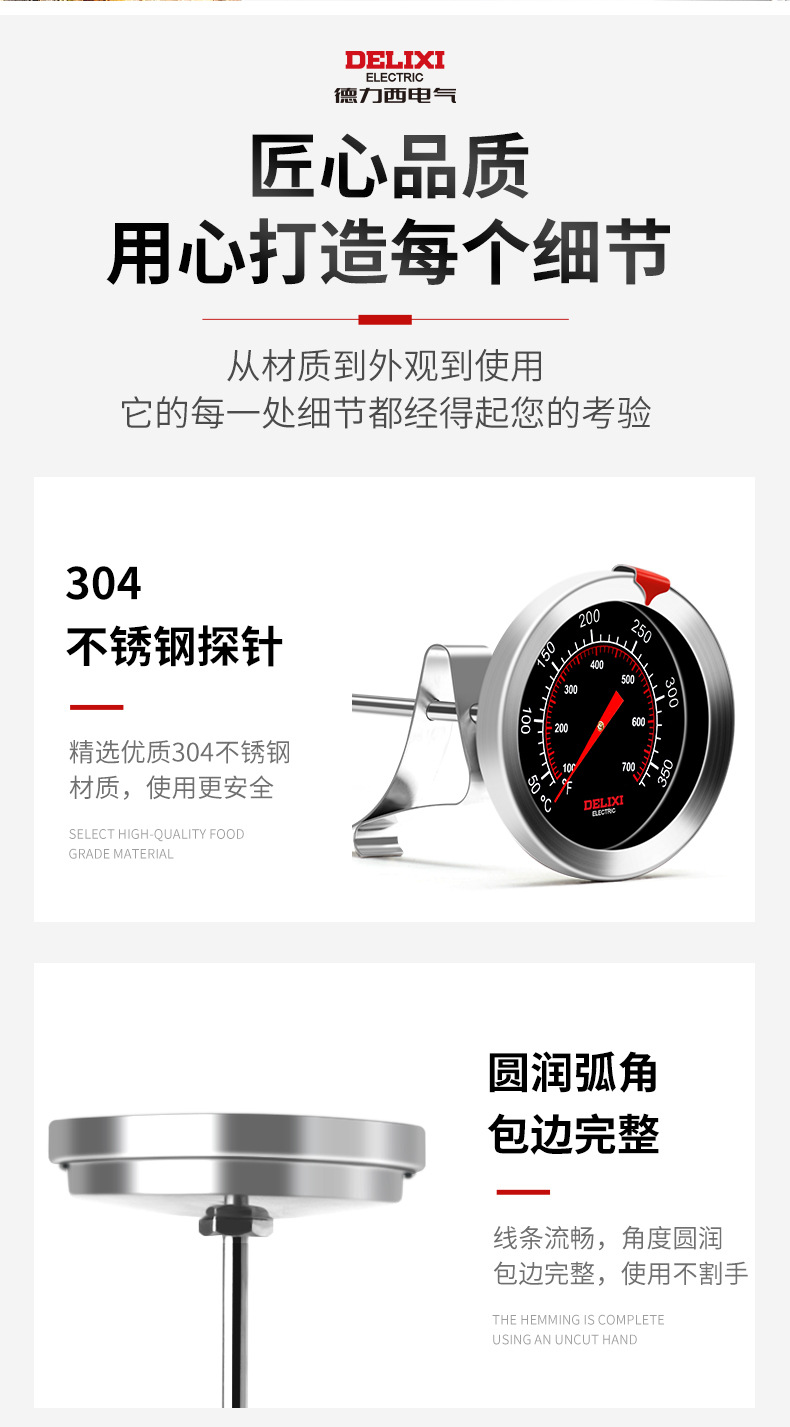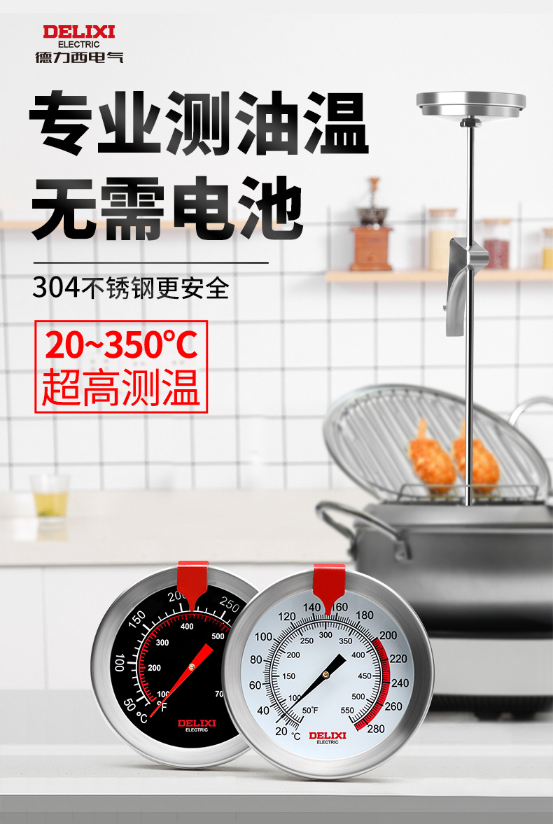 Delixi 오일 온도계 프로브형 튀김 오일 온도 측정 온도계 고온 방지 고온 정밀 온도 측정