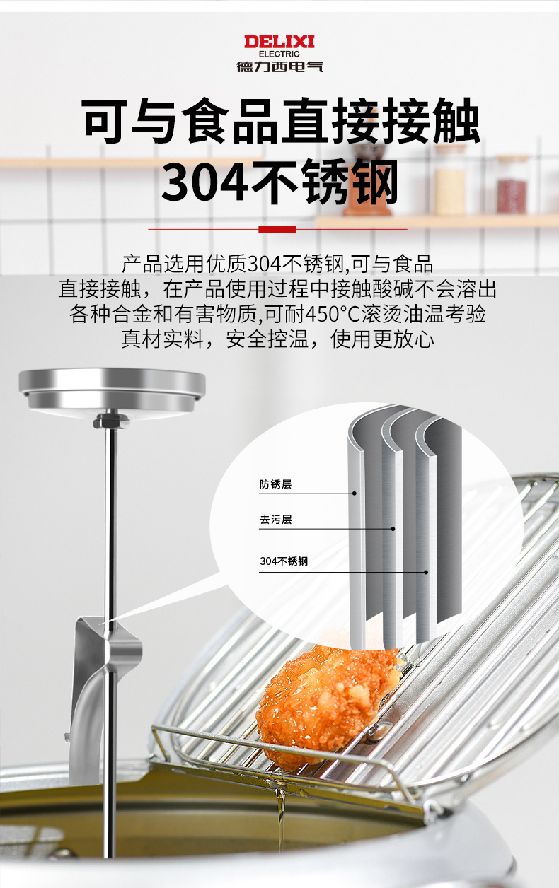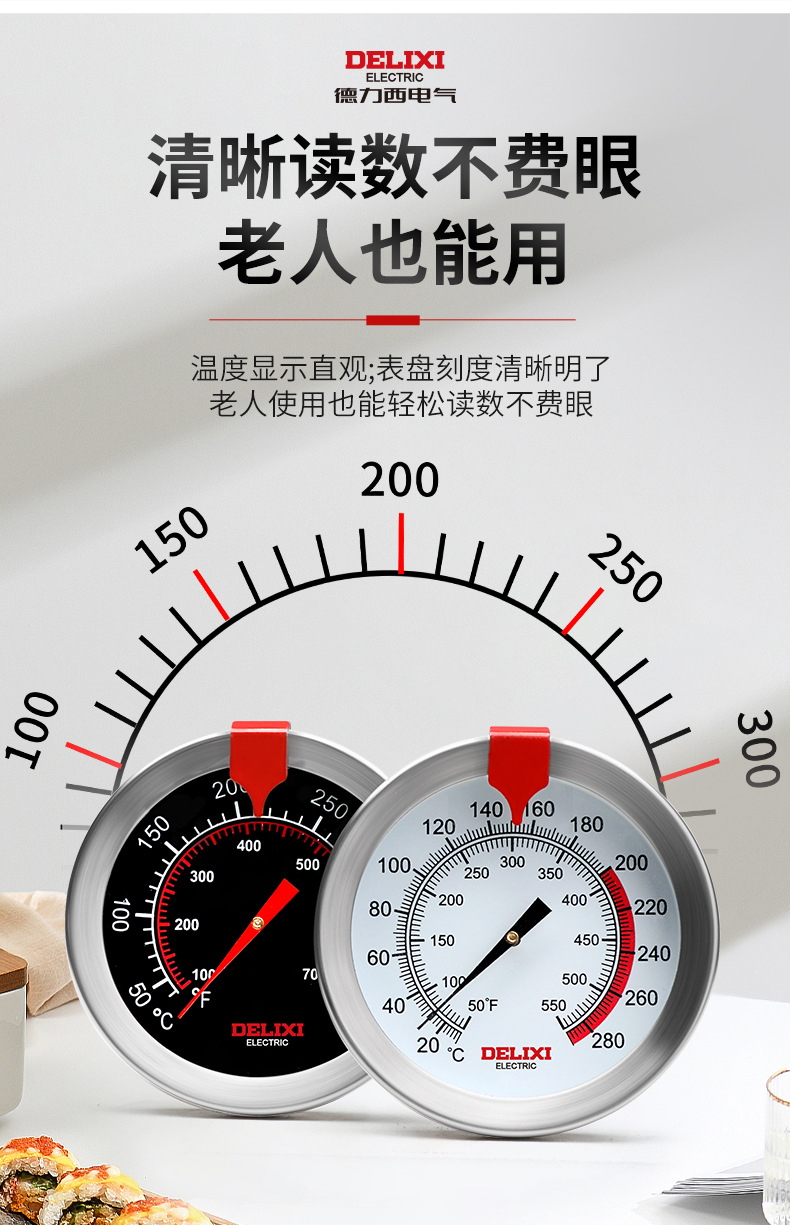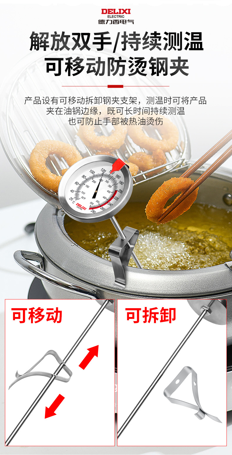 Delixi 오일 온도계 프로브형 튀김 오일 온도 측정 온도계 고온 방지 고온 정밀 온도 측정