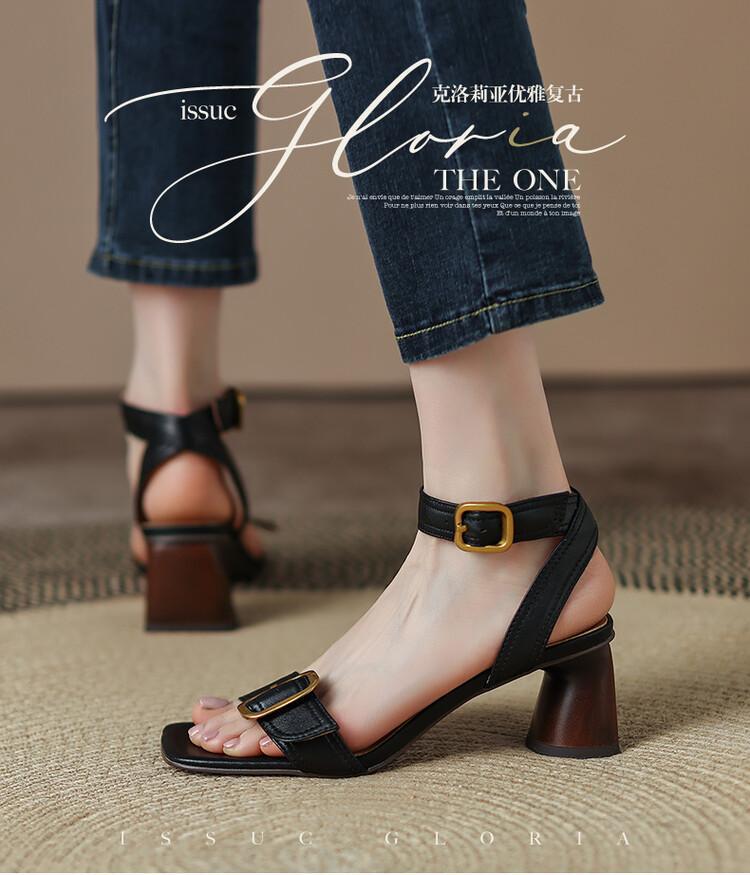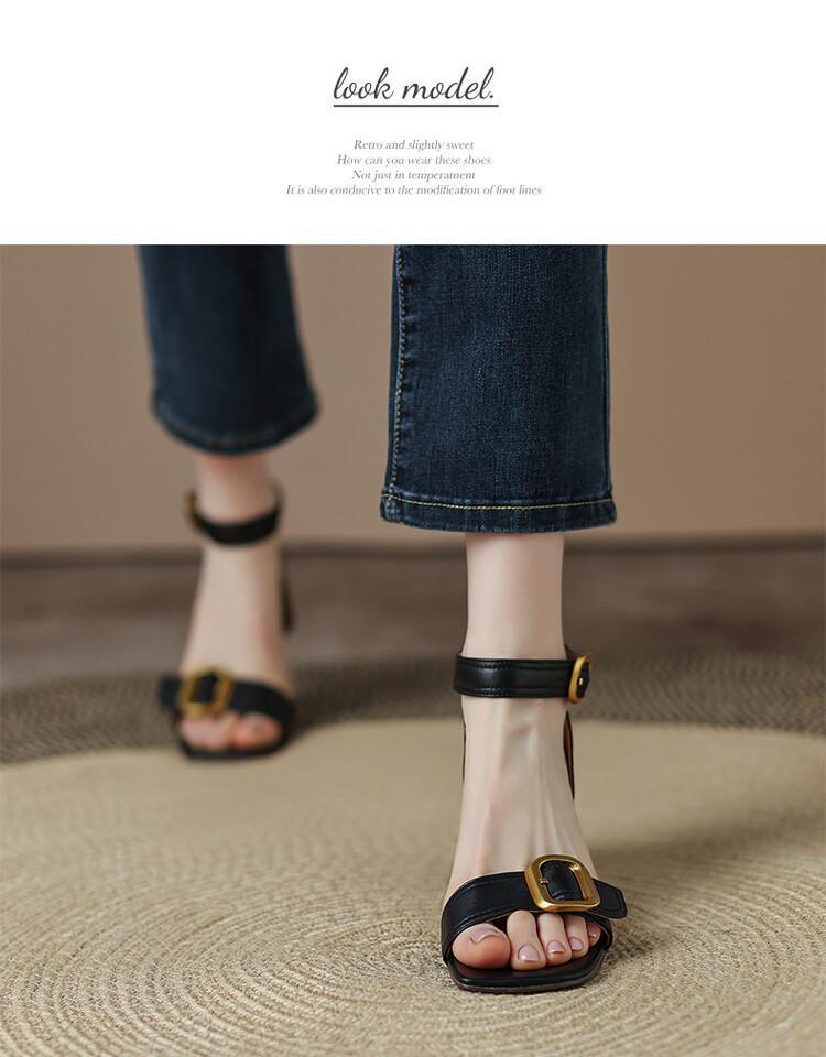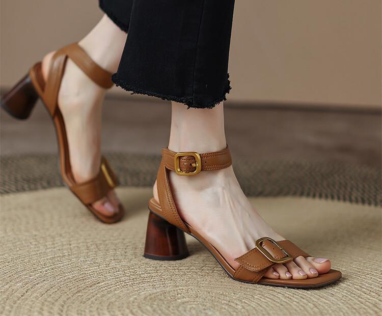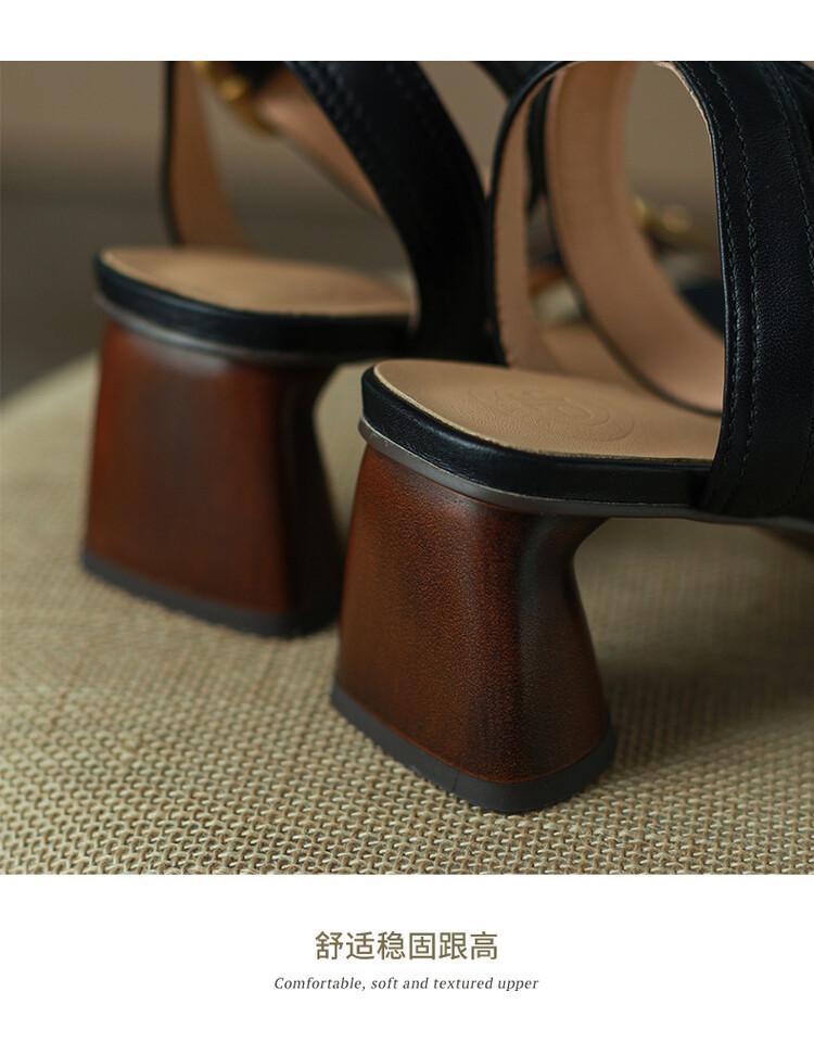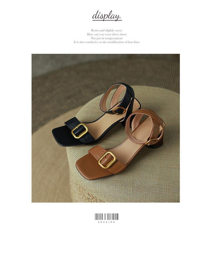2023 여름 새로운 스타일 두꺼운 굽 레트로 오픈 토 샌들 여성용 여름 모든 경기 로마 하이힐 여성 신발스토어 가기