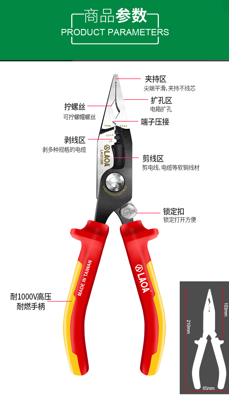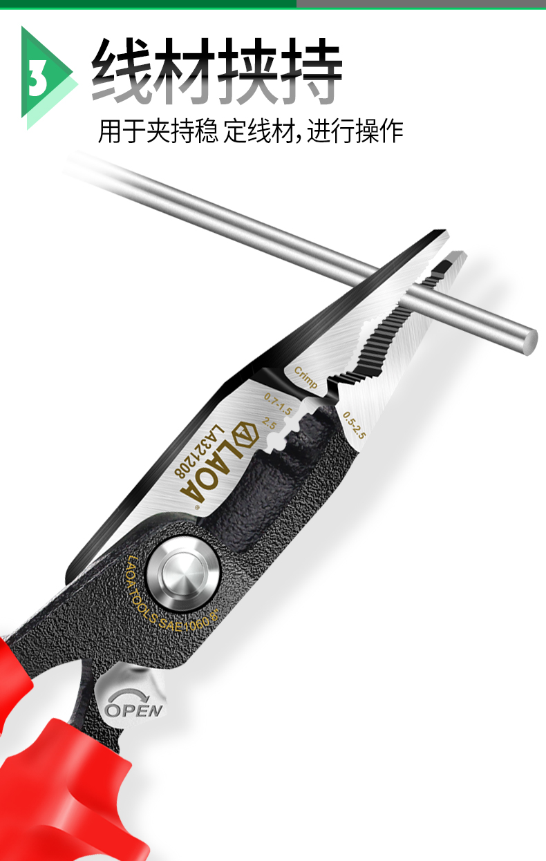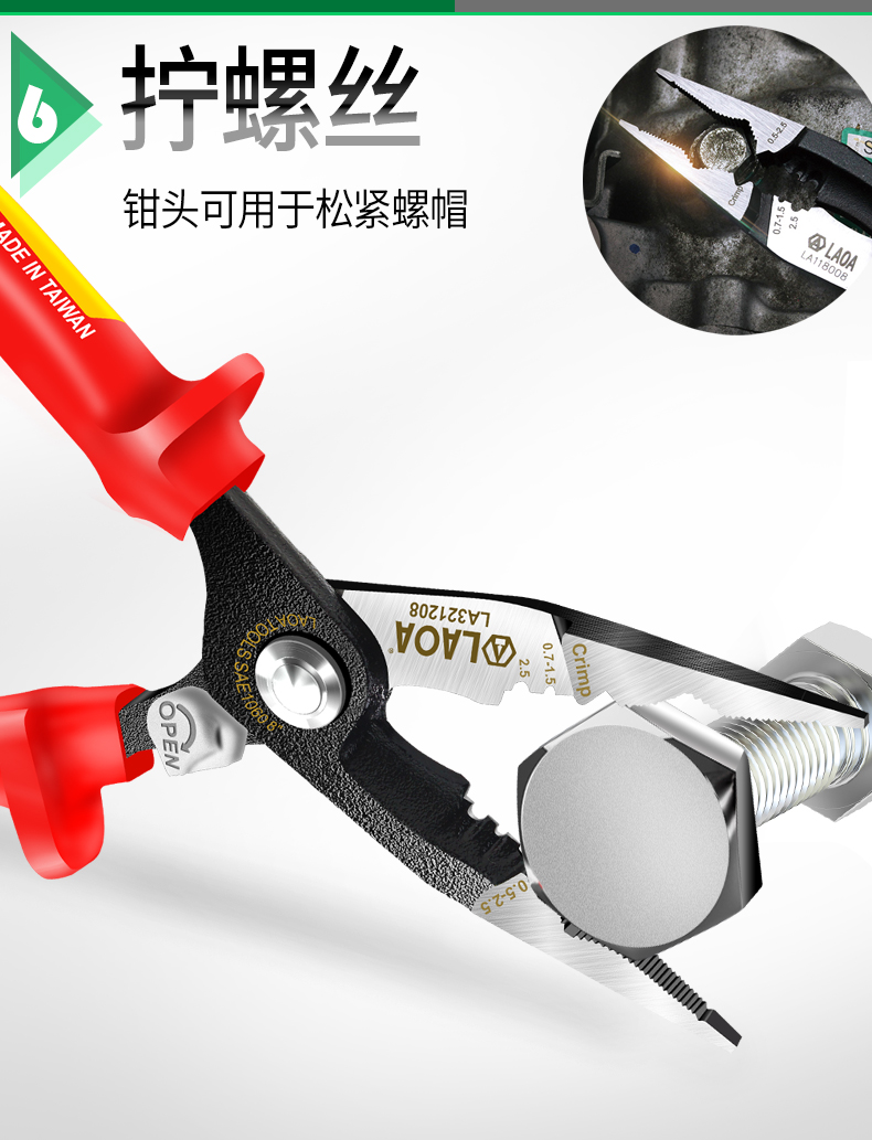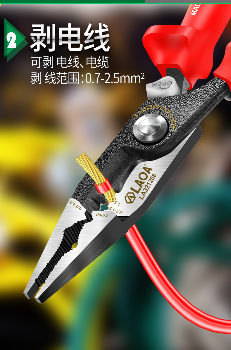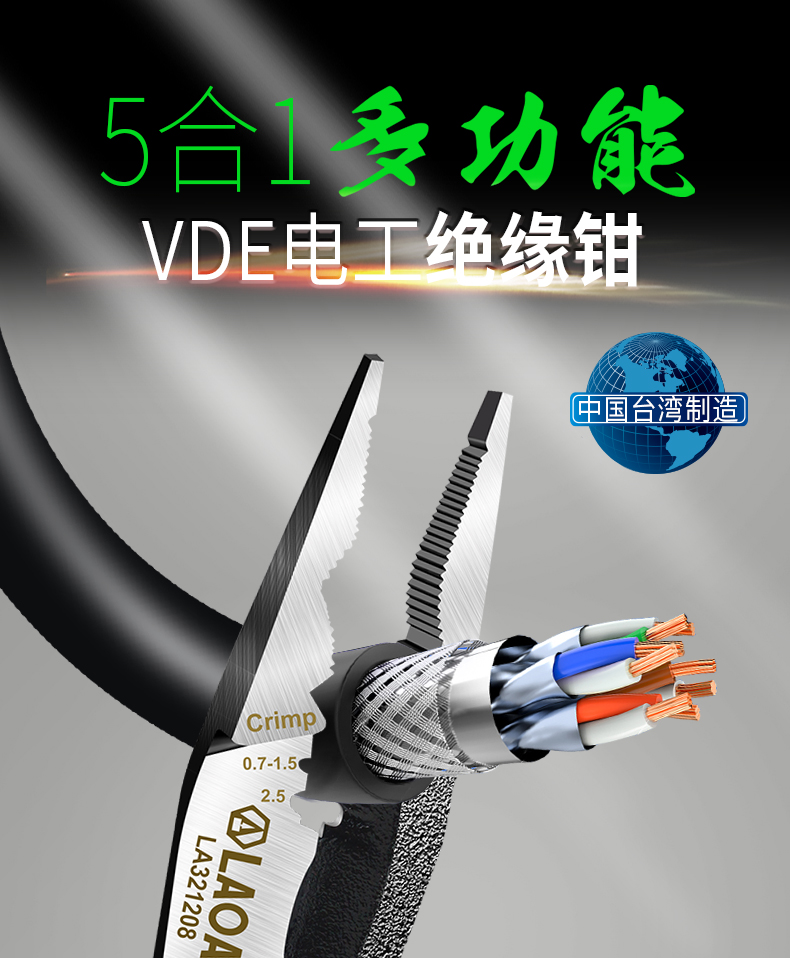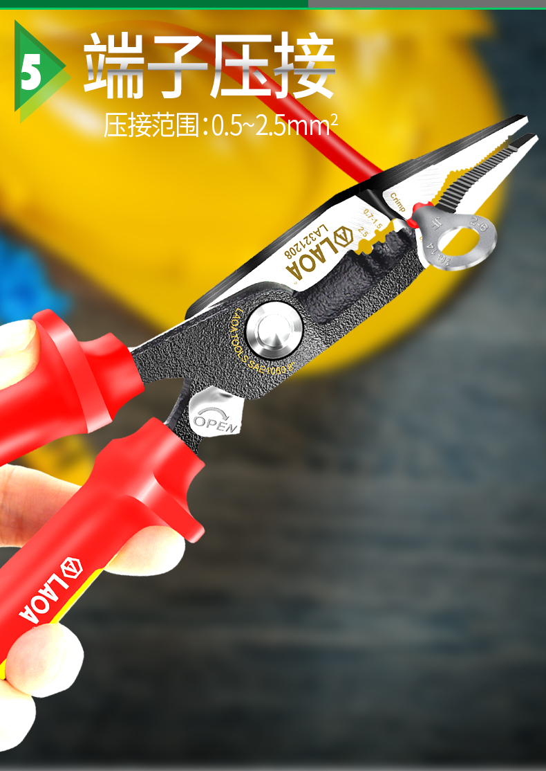 오래된 5-in -1 절연 단자 압착 바늘 코 플라이어 LA321208 고전압 1000V 케이블 스트리퍼 케이블 가위