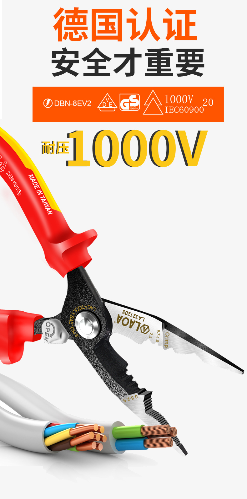 오래된 5-in -1 절연 단자 압착 바늘 코 플라이어 LA321208 고전압 1000V 케이블 스트리퍼 케이블 가위스토어 가기
