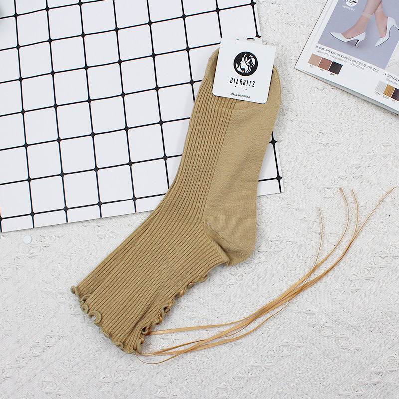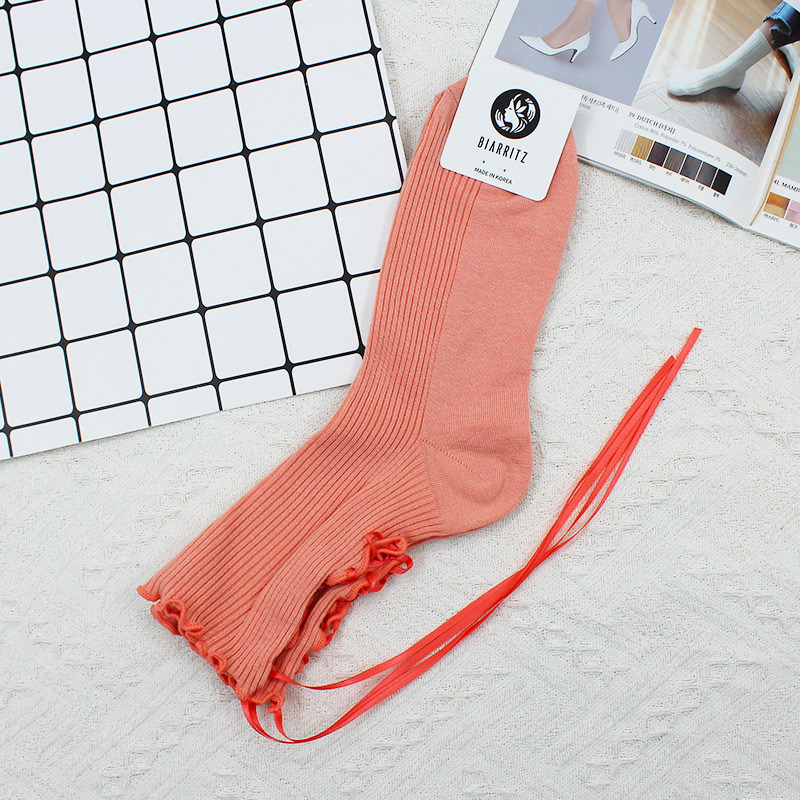 BO23 한국 동대문 봄 여름 신상 세로 줄무늬 끈 묶는 여성용 양말 한국 스타일 여성 양말