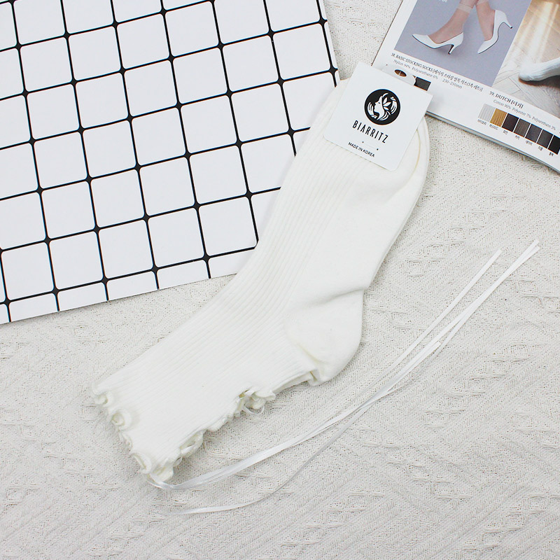 BO23 한국 동대문 봄 여름 신상 세로 줄무늬 끈 묶는 여성용 양말 한국 스타일 여성 양말스토어 가기
