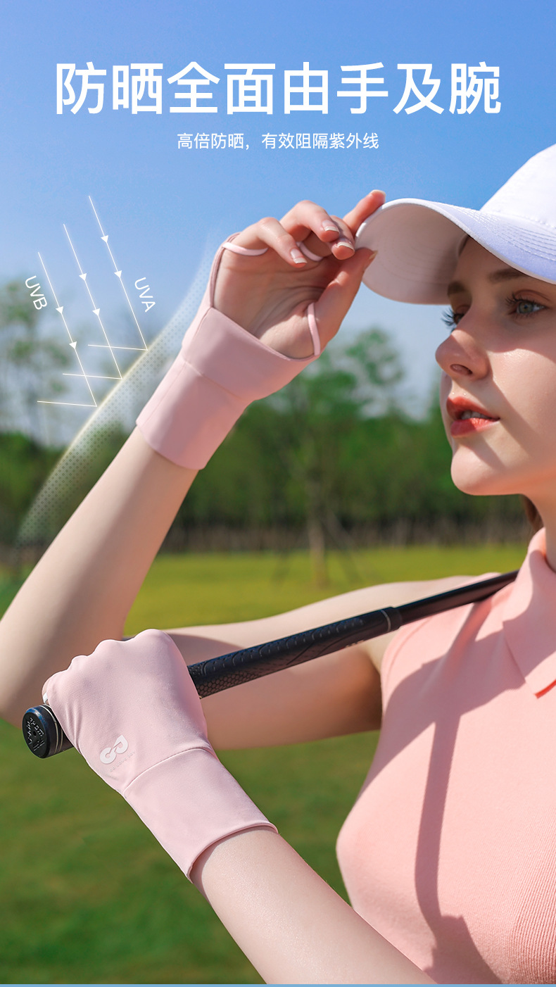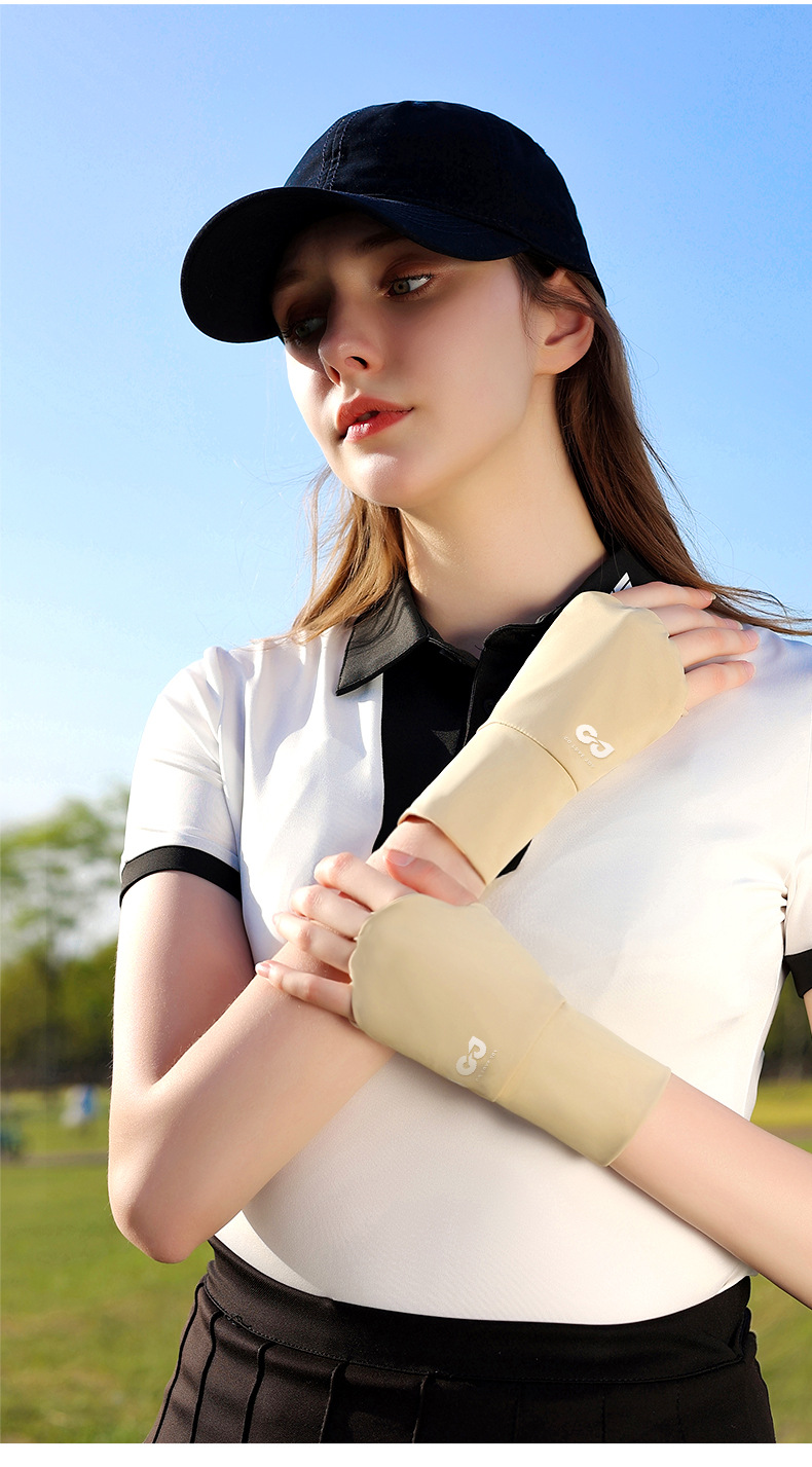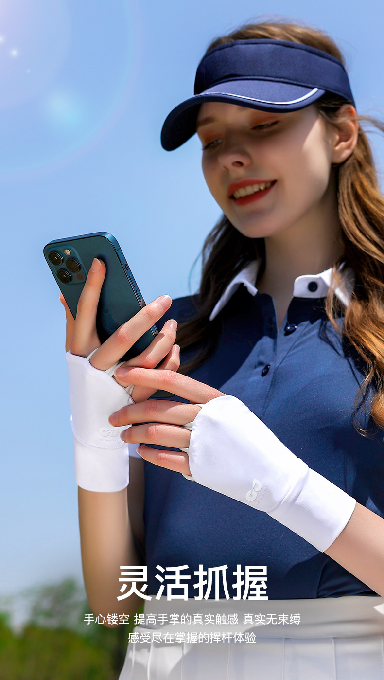 골프 선 스크린 장갑 얼음 감지 자외선 방지 여름 야외 하프 핑거 아이스 실크 장갑 여성용 확장 손목 보호