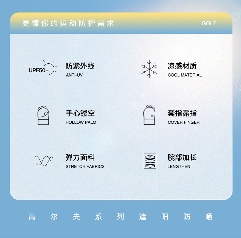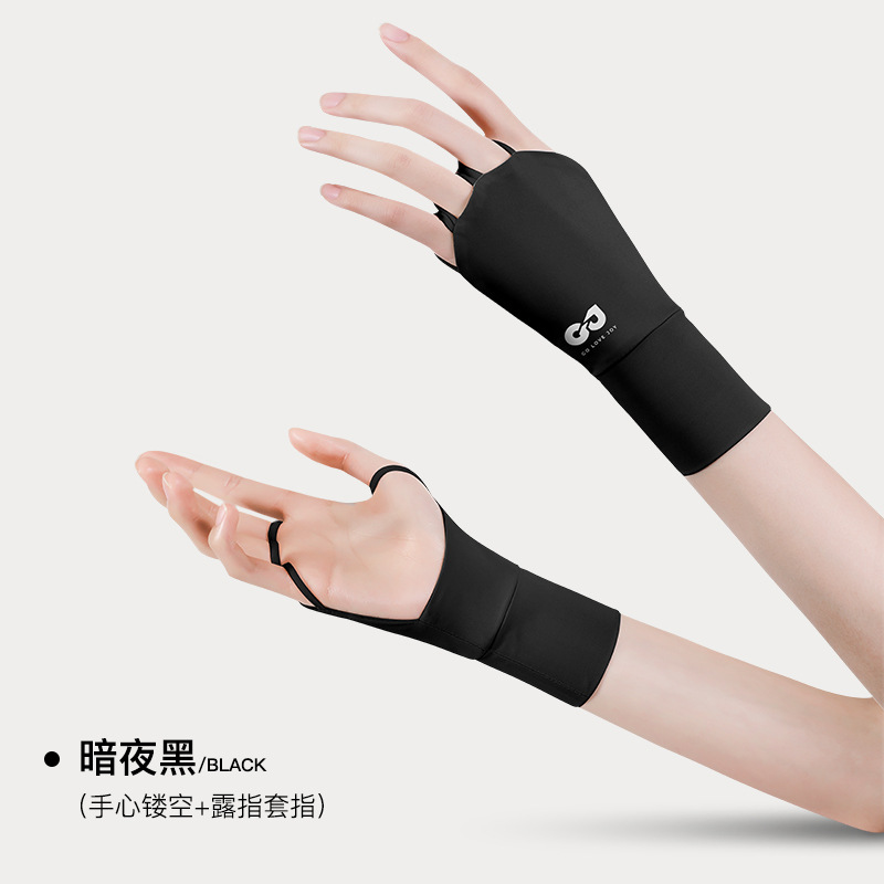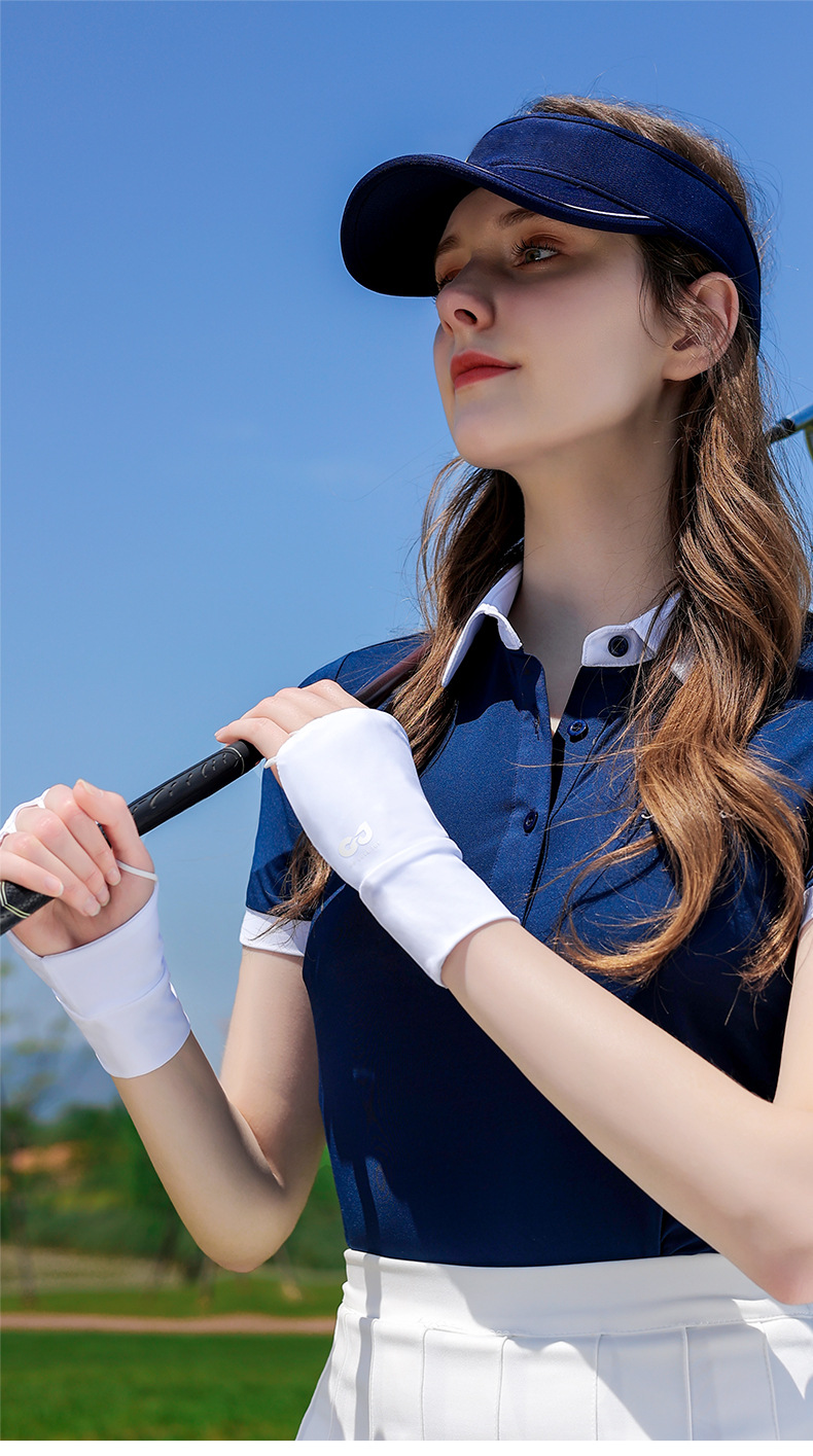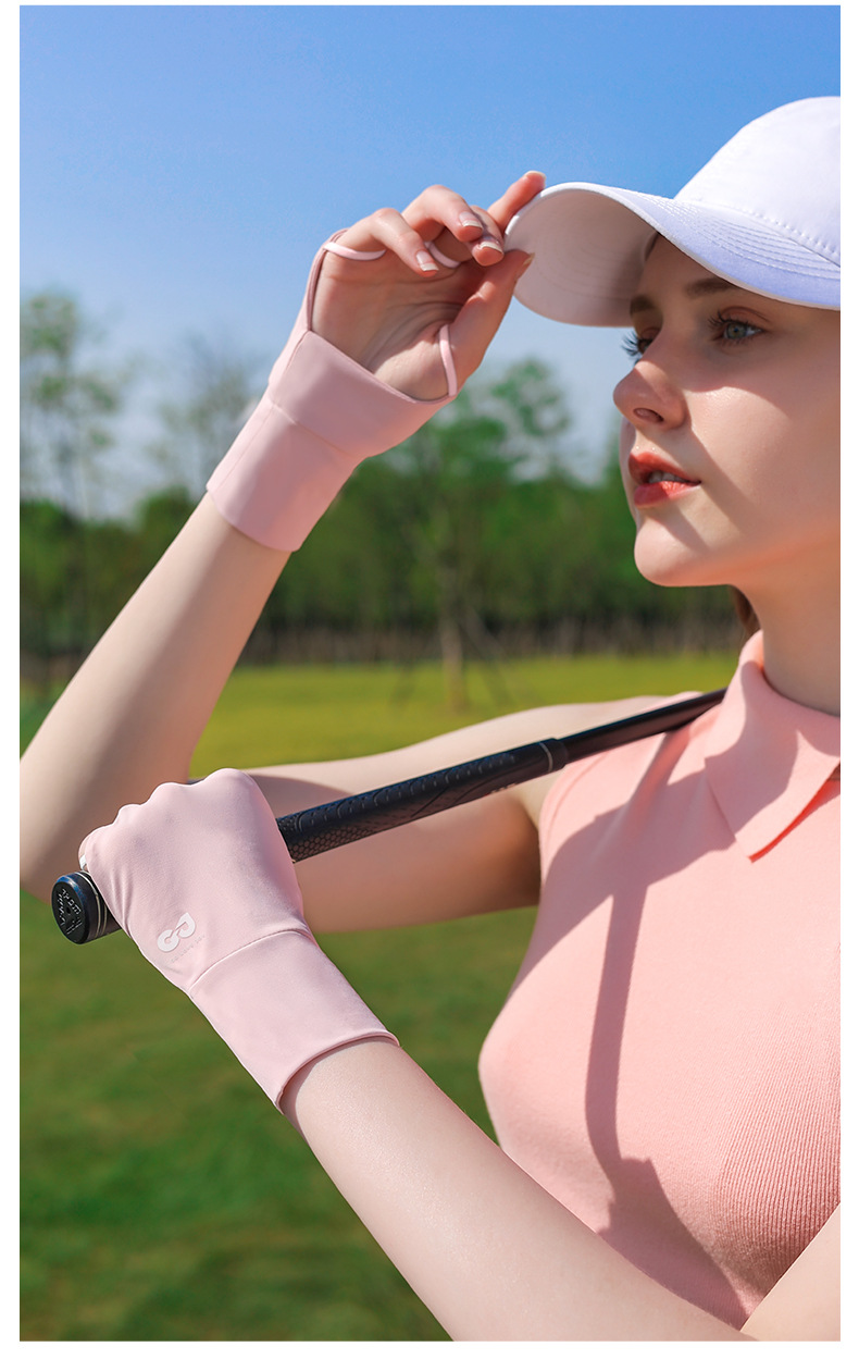 골프 선 스크린 장갑 얼음 감지 자외선 방지 여름 야외 하프 핑거 아이스 실크 장갑 여성용 확장 손목 보호