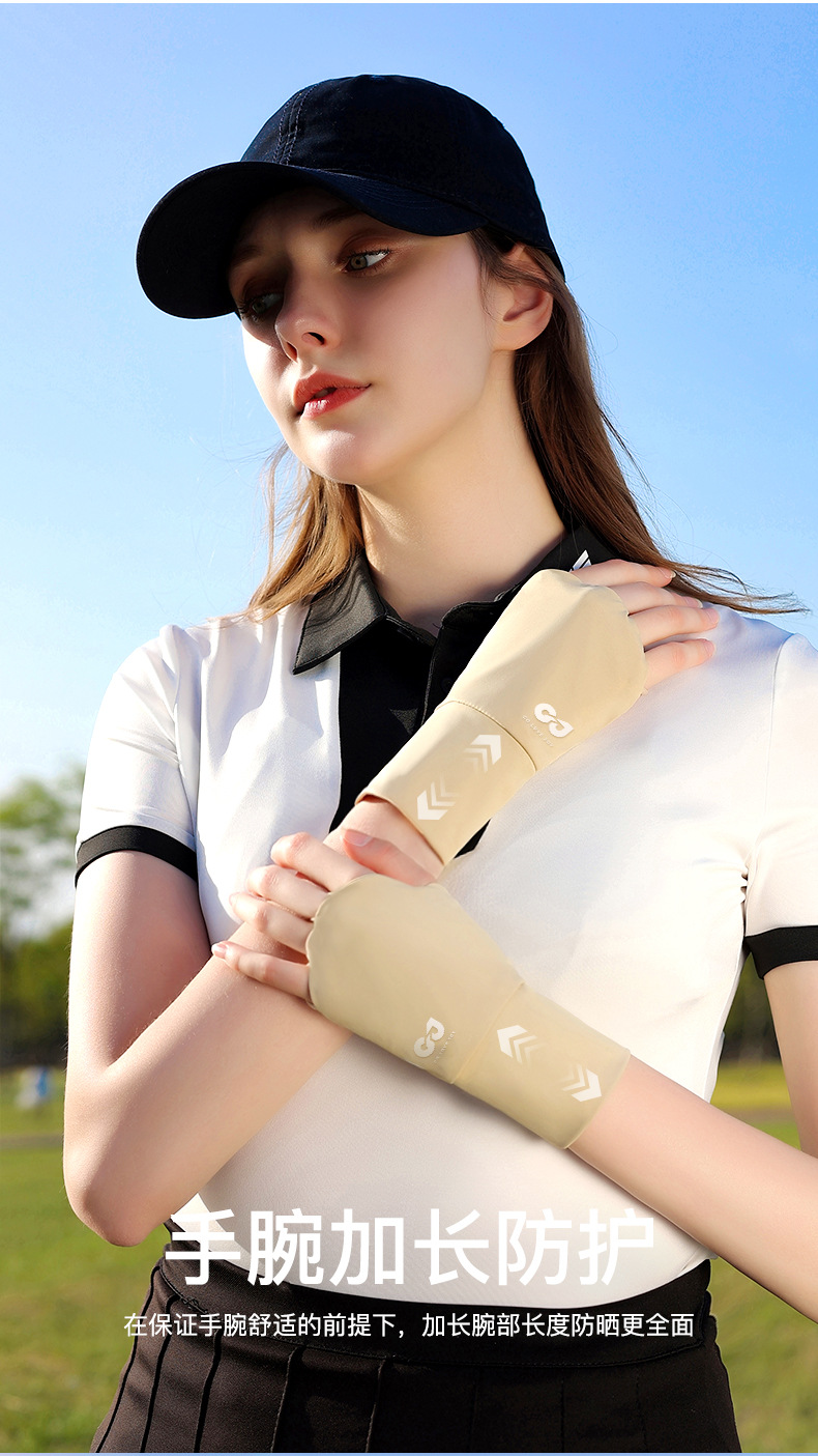 골프 선 스크린 장갑 얼음 감지 자외선 방지 여름 야외 하프 핑거 아이스 실크 장갑 여성용 확장 손목 보호스토어 가기