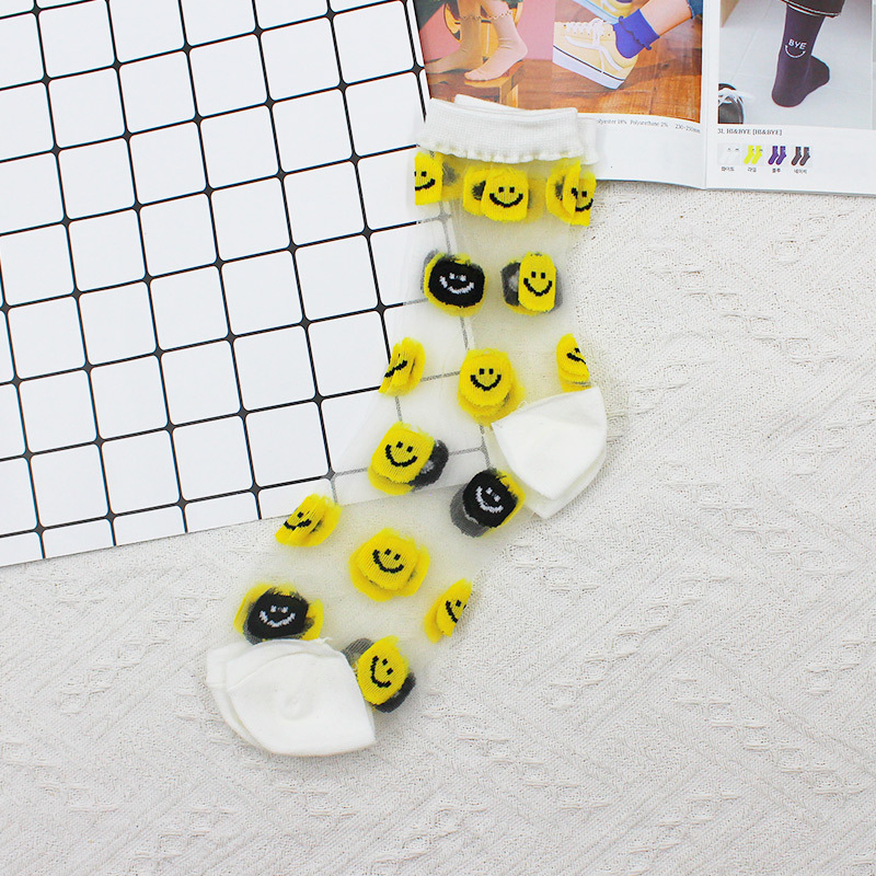 WF011 한국 동대문 풀 샵 웃는 얼굴 면화 바닥 스타킹 2022 봄 · 여름 새 한국식 여성 중견 송아지 길이 양말스토어 가기