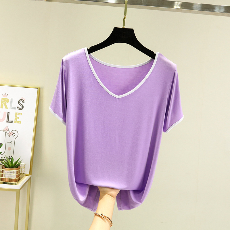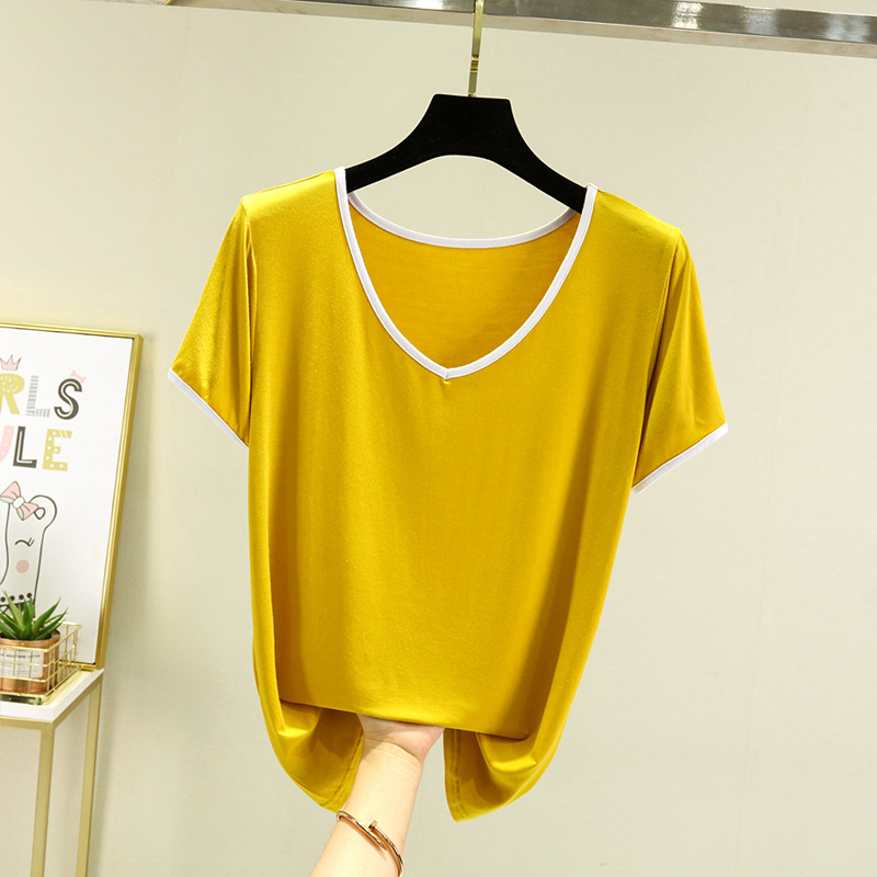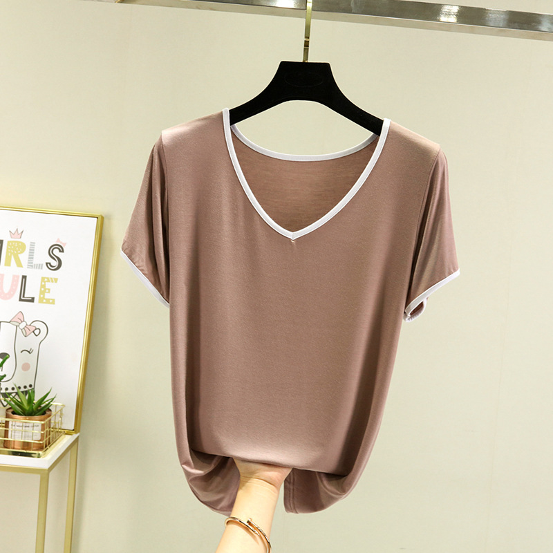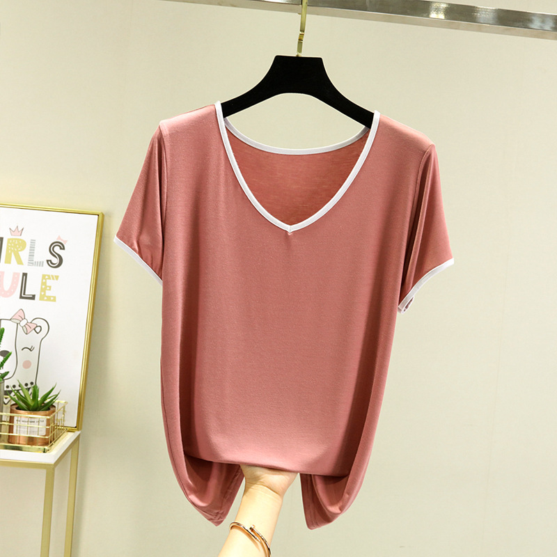 모달 티셔츠 여성용 반팔 여름 세련된 모든 매치 이너 베이스 셔츠 2022 얇은 한국 V-넥 여성 패션스토어 가기
