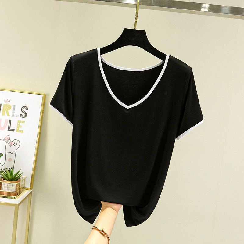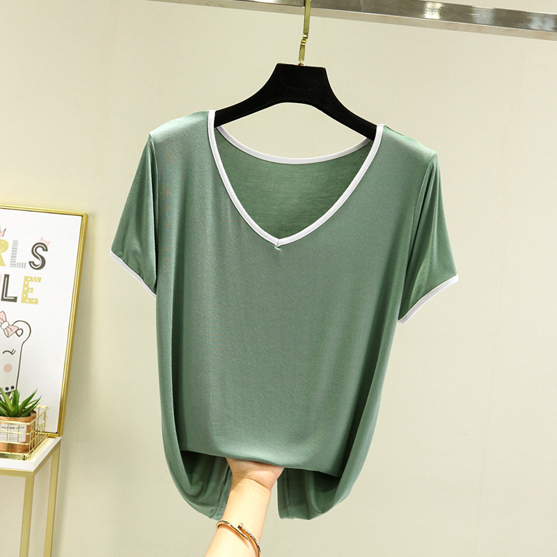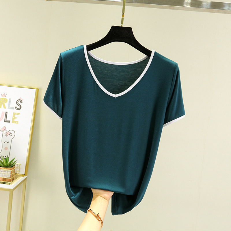 모달 티셔츠 여성용 반팔 여름 세련된 모든 매치 이너 베이스 셔츠 2022 얇은 한국 V-넥 여성 패션