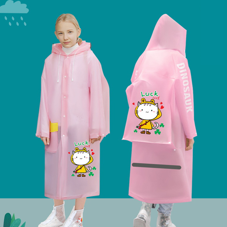 • 핑크 새끼 고양이-작은 공룡 206 어린이 비옷 02553 #