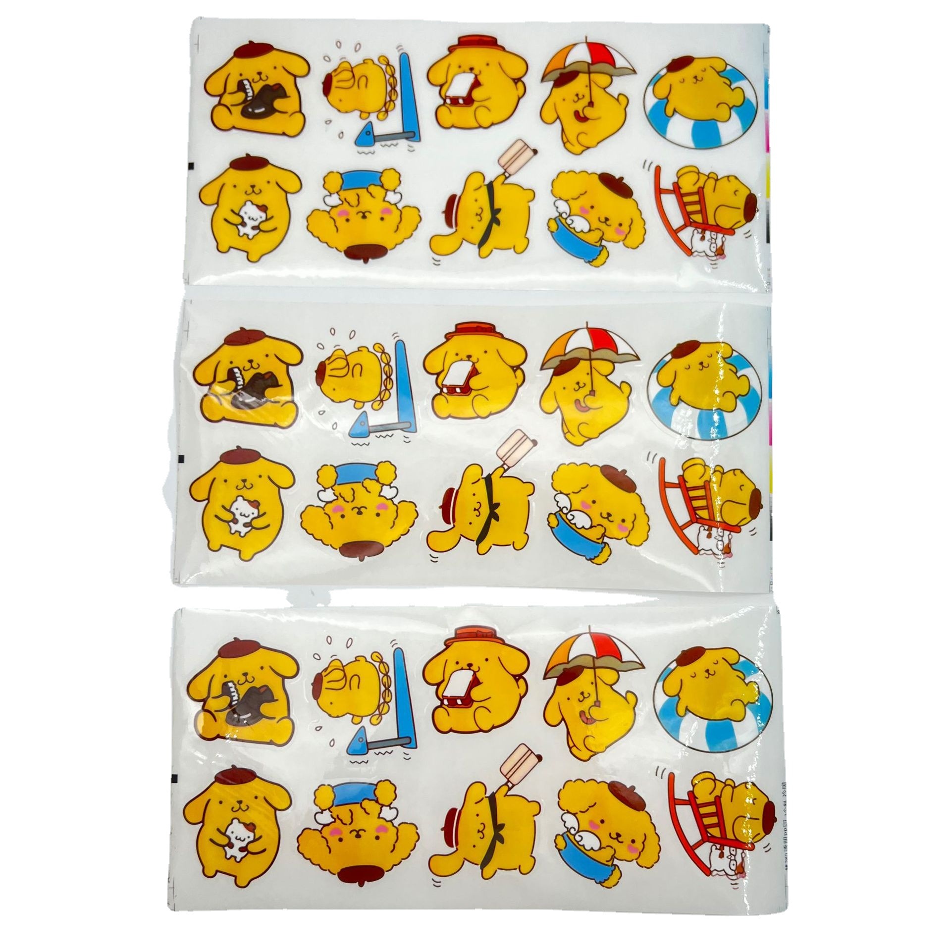贴纸:一张含有10个不同图案,每个图都分别有模切外轮廓,图案平均宽度约5-7cm不等,