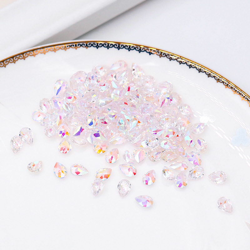 정확한 네일 수지 AB 다채로운 뾰족한 물방울 5*7mm 플래시 다이아몬드 다채로운 흰색 모조 다이아몬드 네일 패치스토어 가기