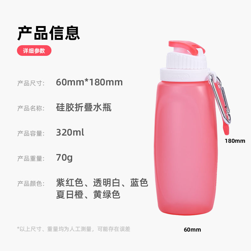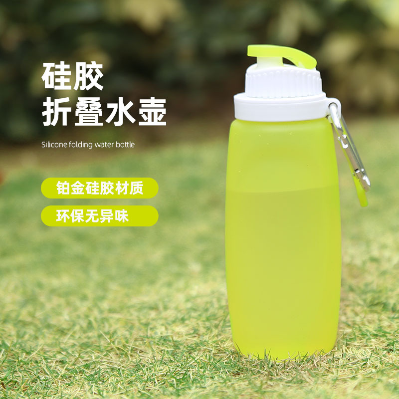 접이식 휴대용 동반 컵 식품 등급 500ml 실리콘 물병 고온 저항 물 컵 야외 스포츠 승마 주전자