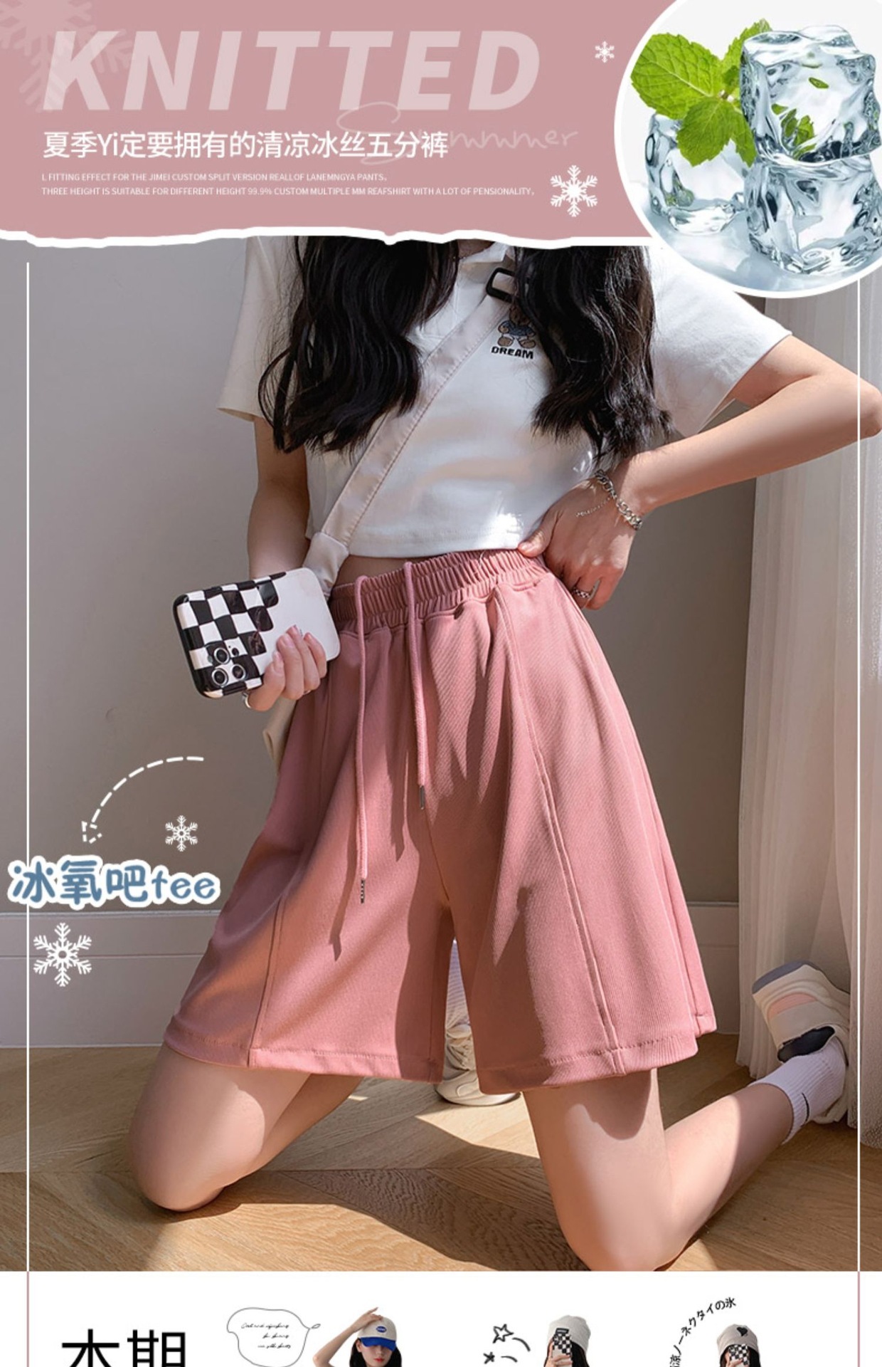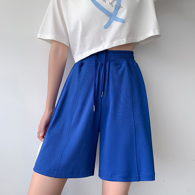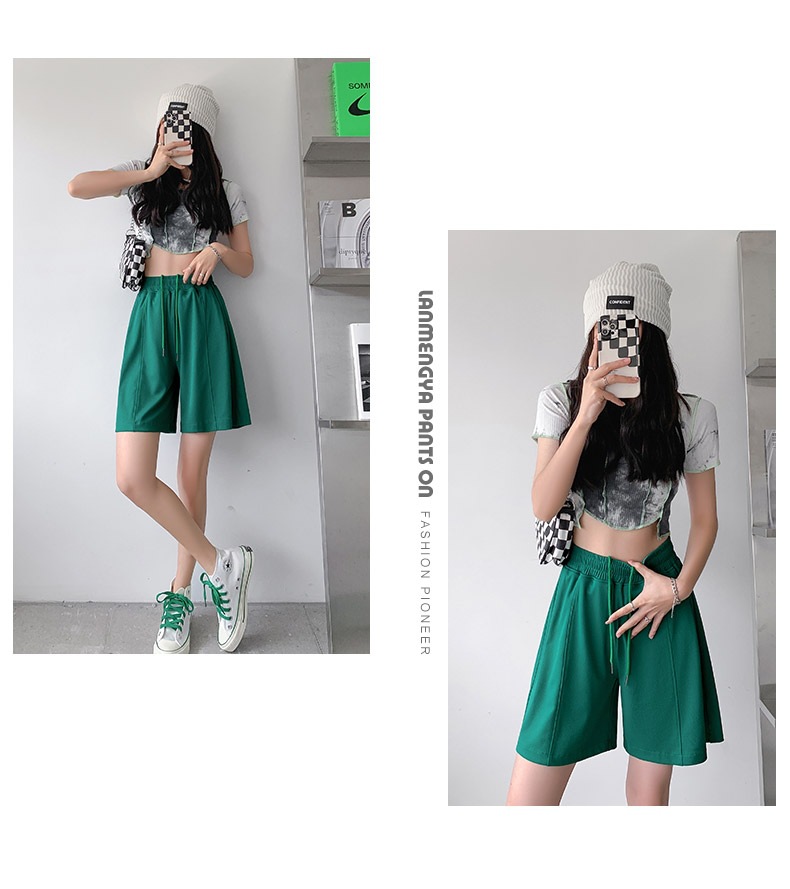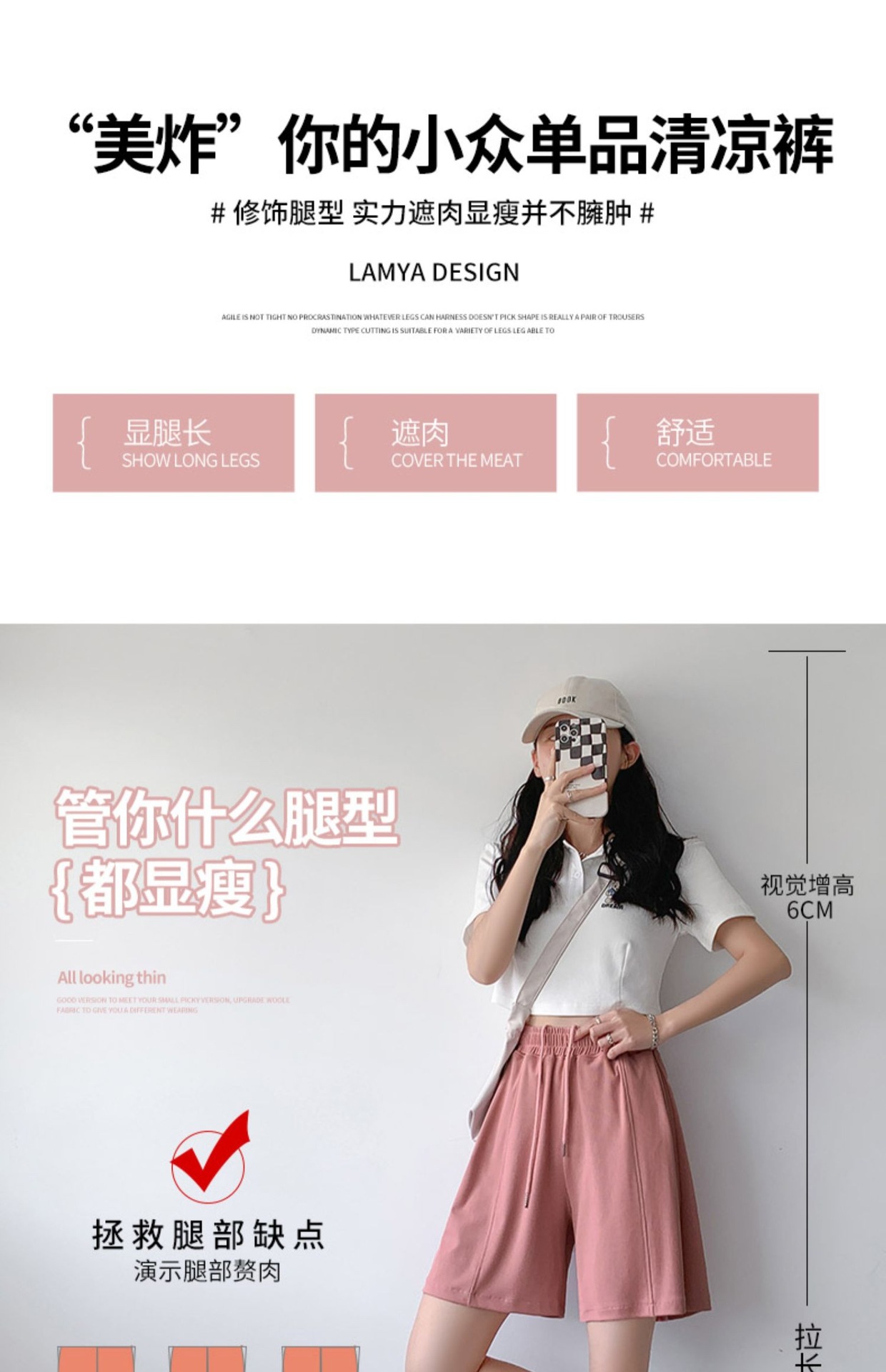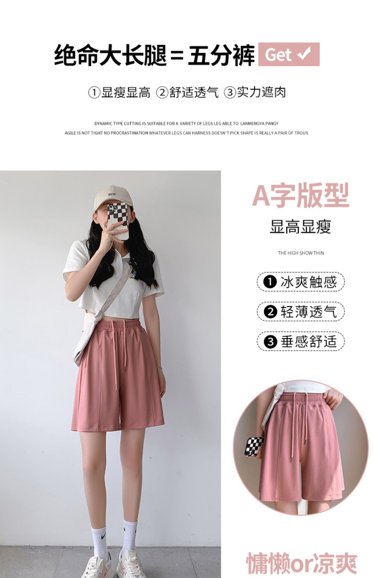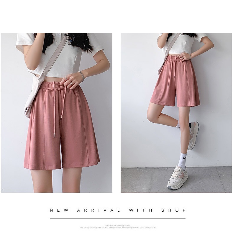 유럽 스타일 여름 속건 스포츠 여성복 신상 반바지 얇고 슬림하며 시원하고 루즈한 하이웨이스트 와이드 레그 5부 바지스토어 가기