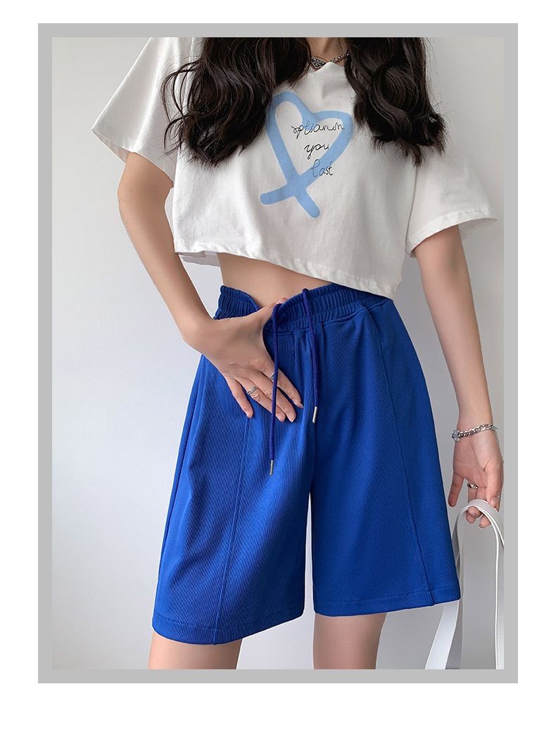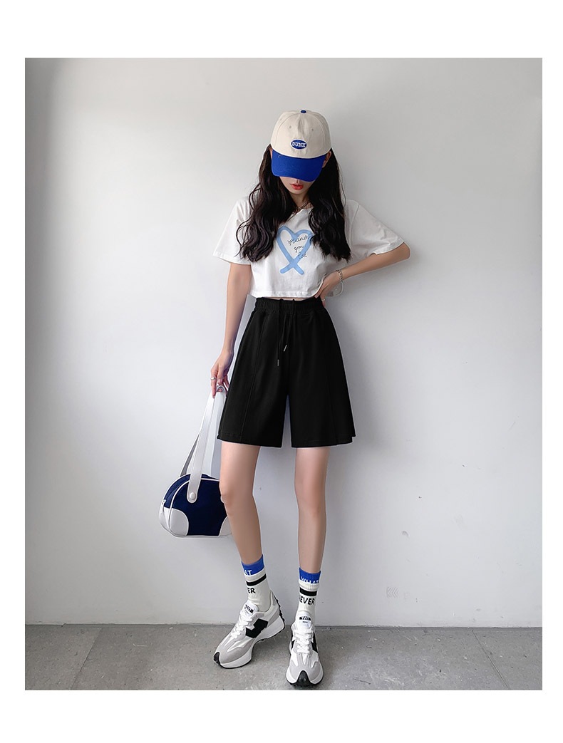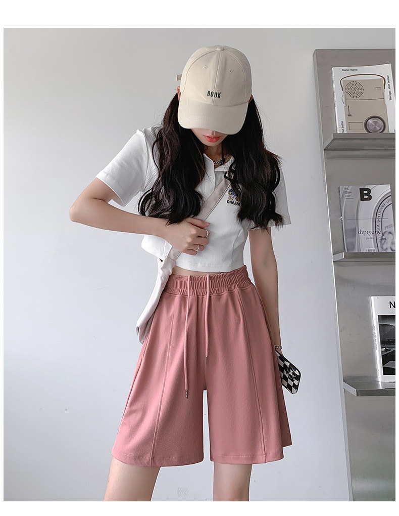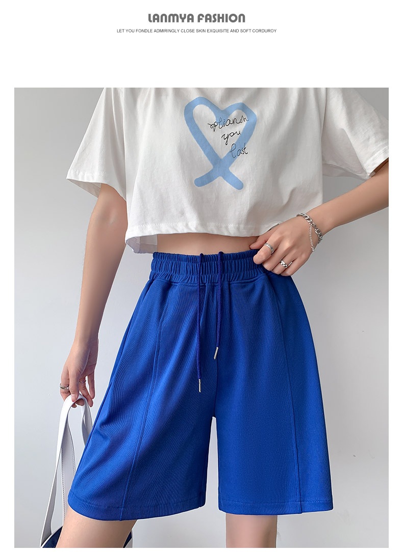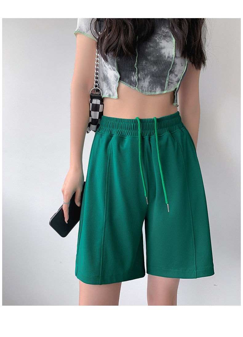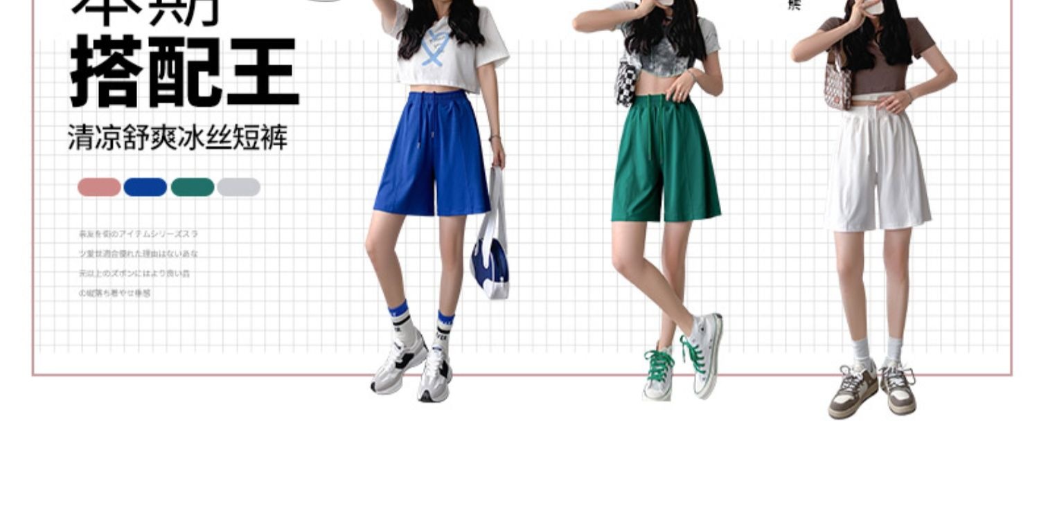 유럽 스타일 여름 속건 스포츠 여성복 신상 반바지 얇고 슬림하며 시원하고 루즈한 하이웨이스트 와이드 레그 5부 바지스토어 가기