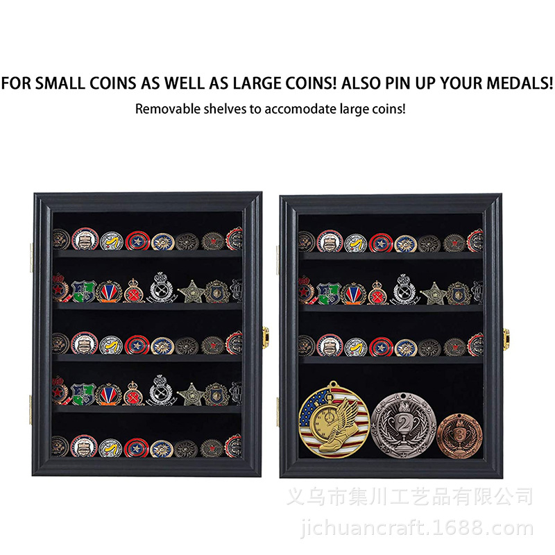 适合小硬币、大硬币,也可将奖牌挂上! 可拆卸货架,在同一个箱子中展示不同尺寸的硬币和奖品