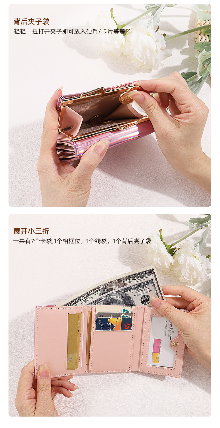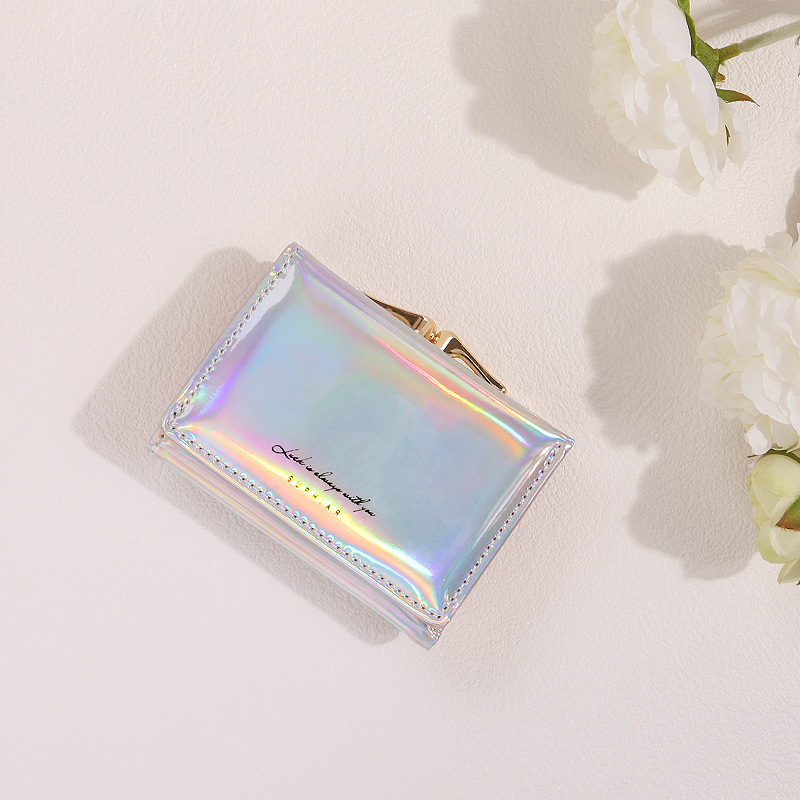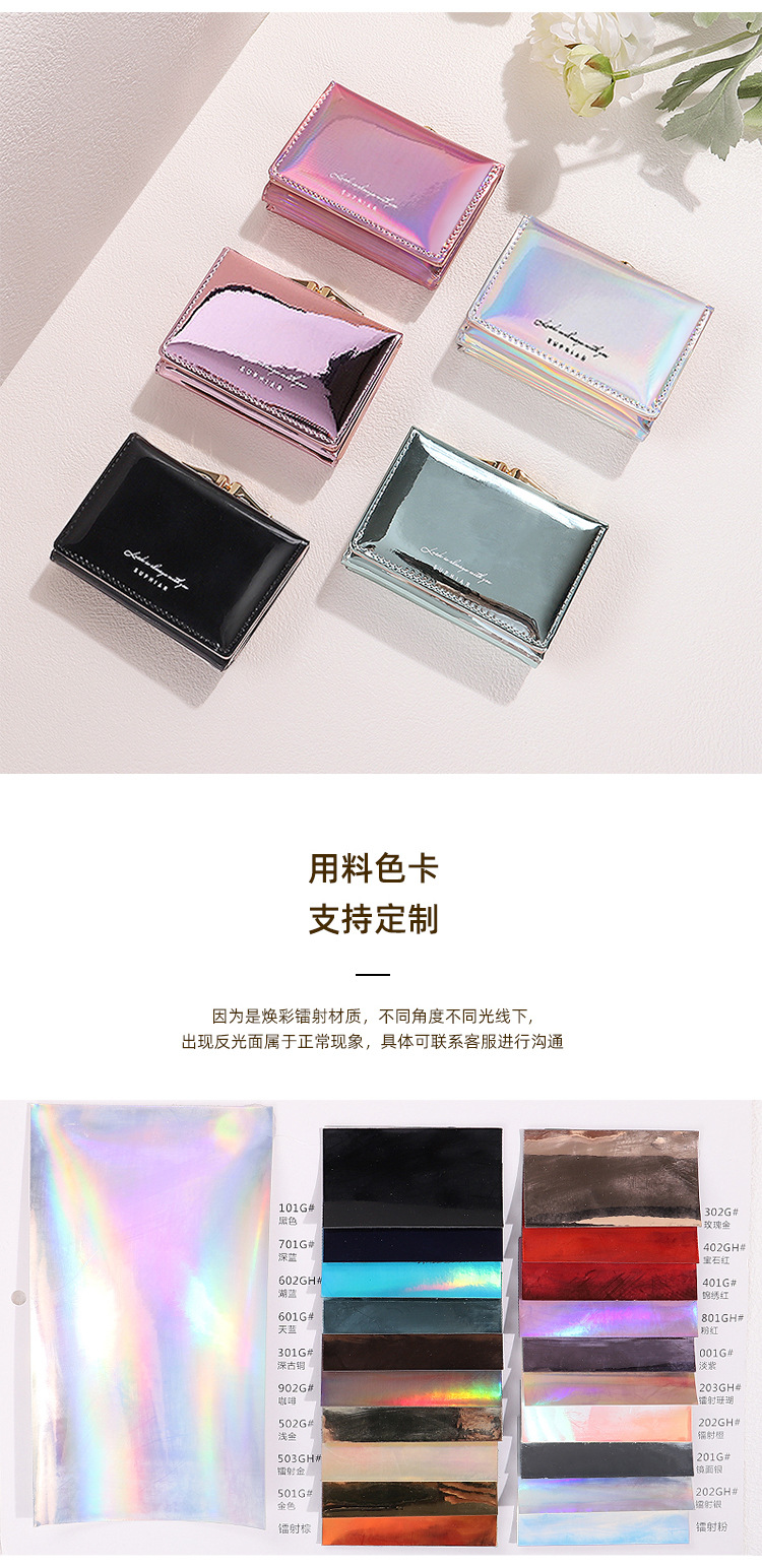 레이저 인 코인 지갑 여성 PU 카드 가방 학생 패션 3 배 올 매치 짧은 귀여운 지갑 여성의 하이 엔드 감각스토어 가기
