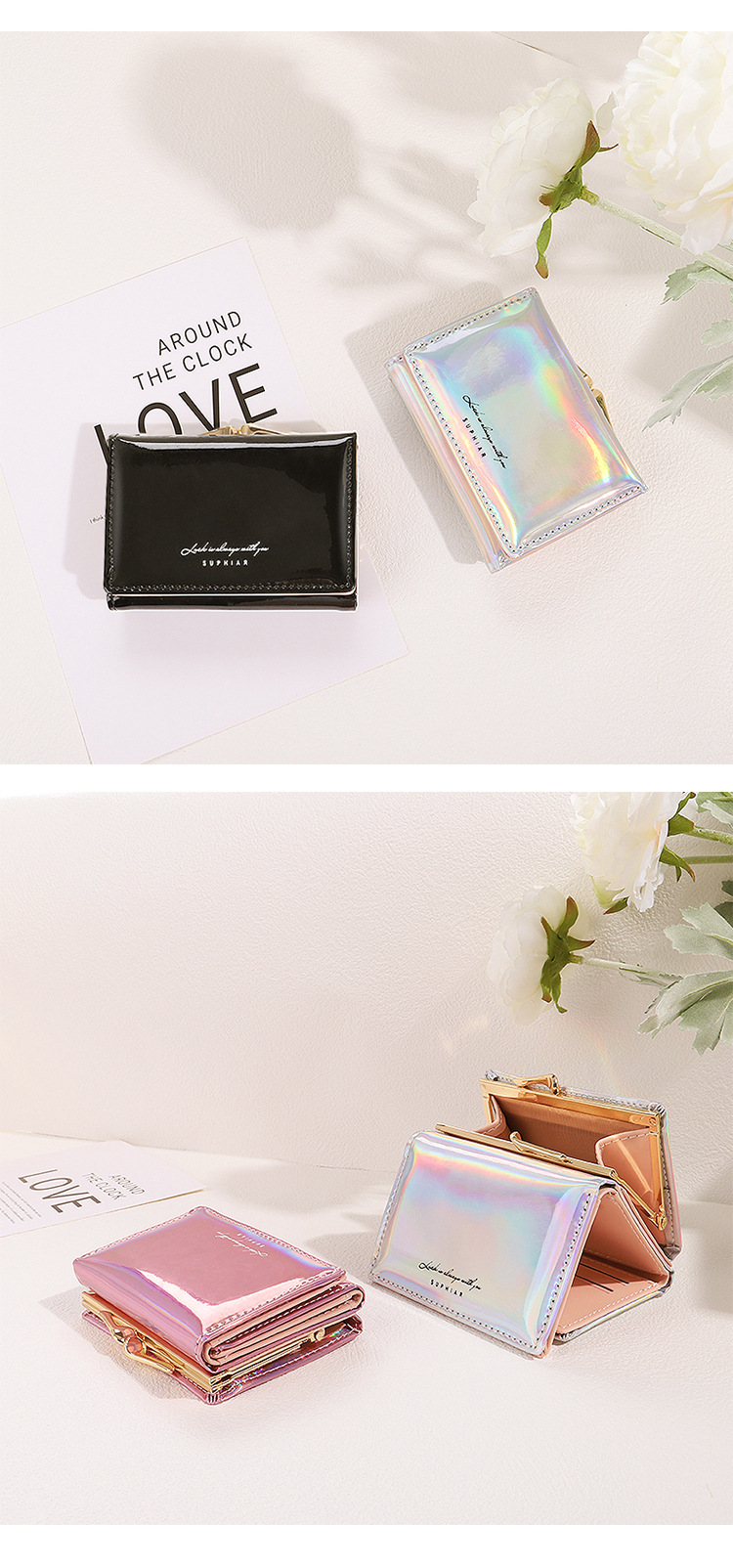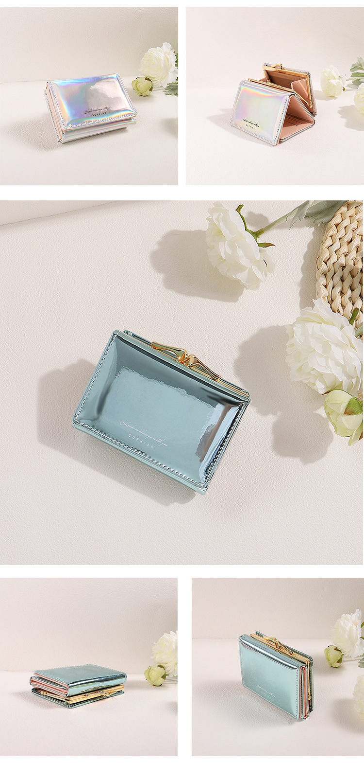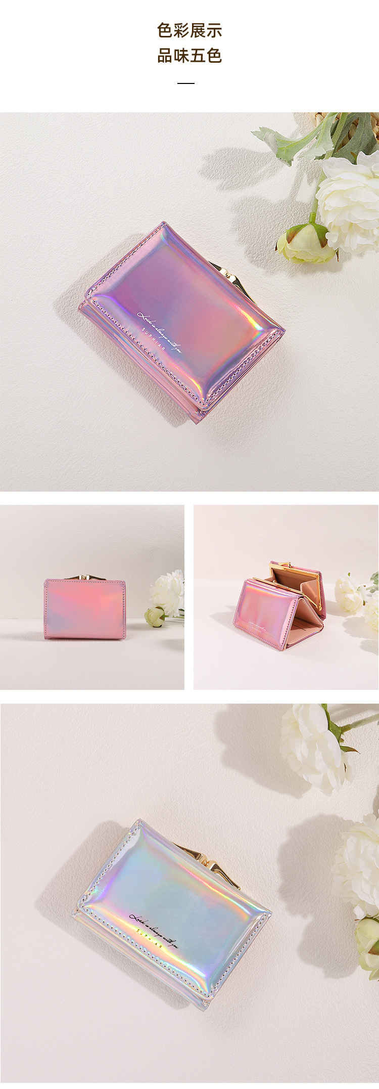 레이저 인 코인 지갑 여성 PU 카드 가방 학생 패션 3 배 올 매치 짧은 귀여운 지갑 여성의 하이 엔드 감각스토어 가기