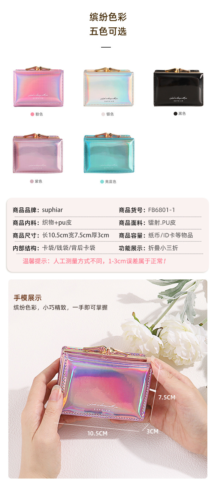 레이저 인 코인 지갑 여성 PU 카드 가방 학생 패션 3 배 올 매치 짧은 귀여운 지갑 여성의 하이 엔드 감각
