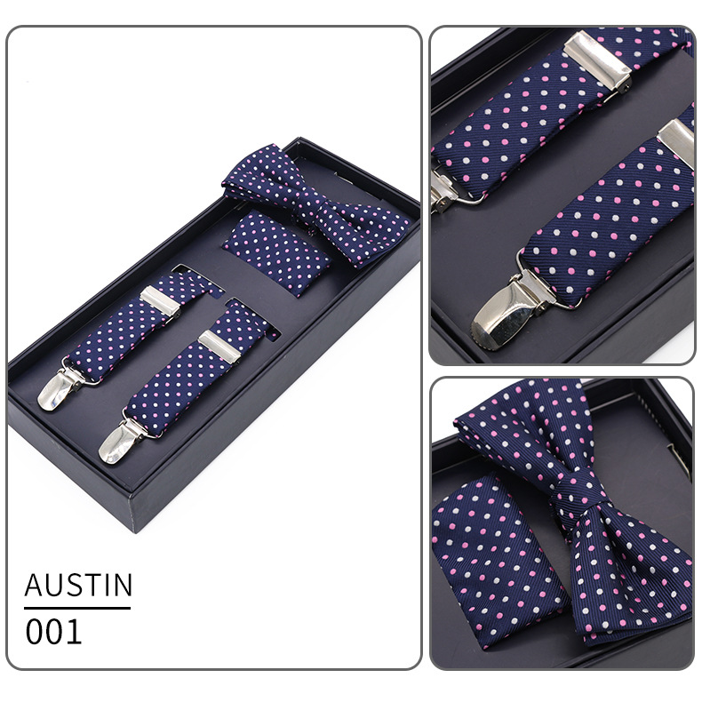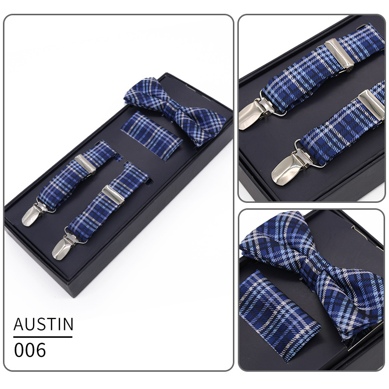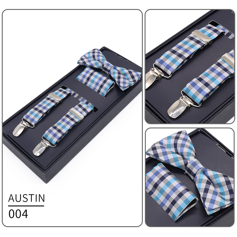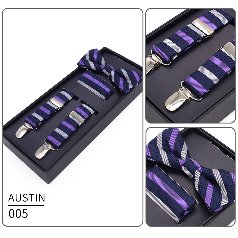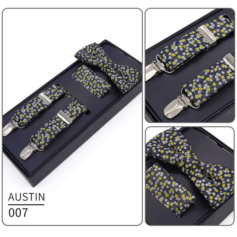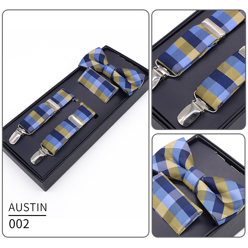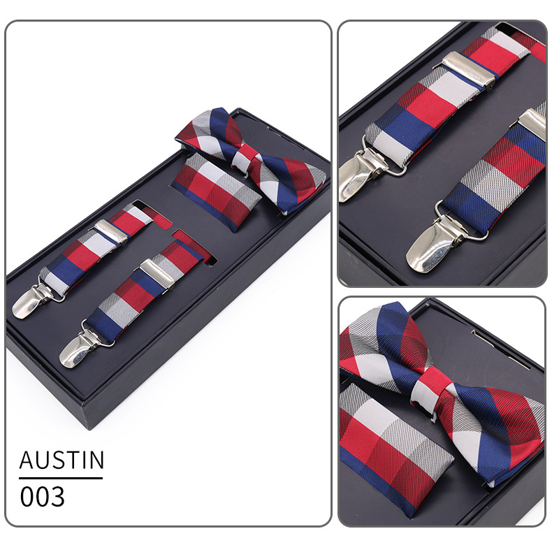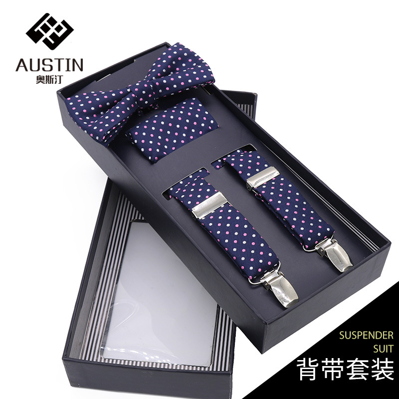 남성 성인 Y 형 3 클립 스트랩 세트 나비 타이 조절 탄성 스트랩 스퀘어 스카프 폴리 에스테르 크로스 스트랩 제조업체스토어 가기