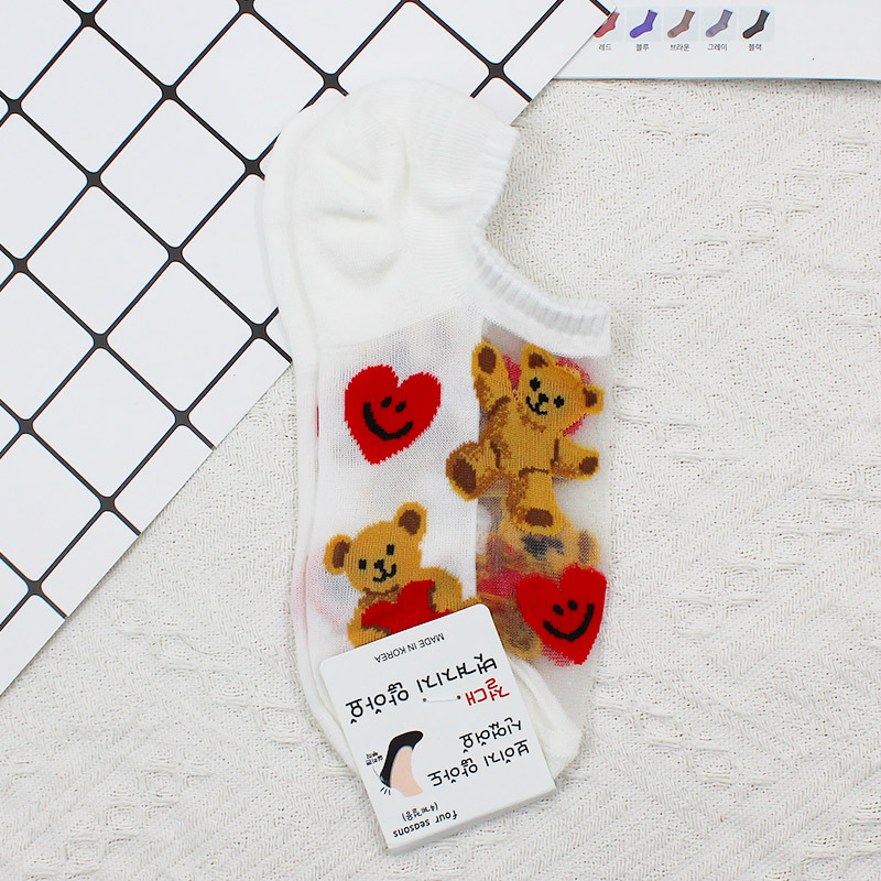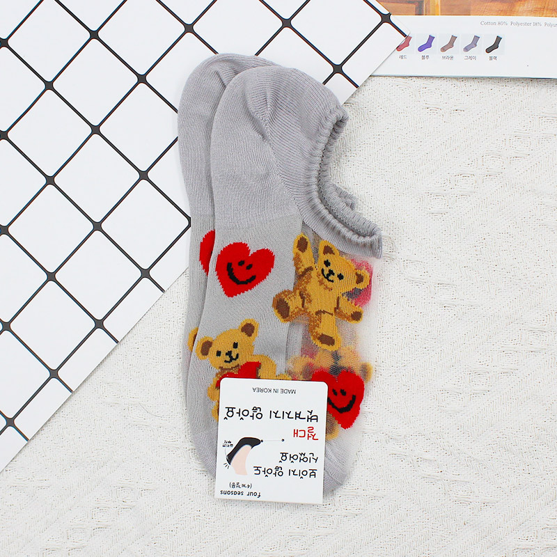 한국 동대문 2022 여름 새로운 면 바닥 스타킹 귀여운 빨간 심장 곰 한국 스타일 여성의 보이지 않는 양말스토어 가기