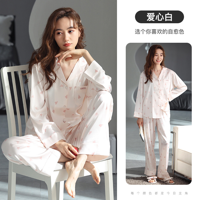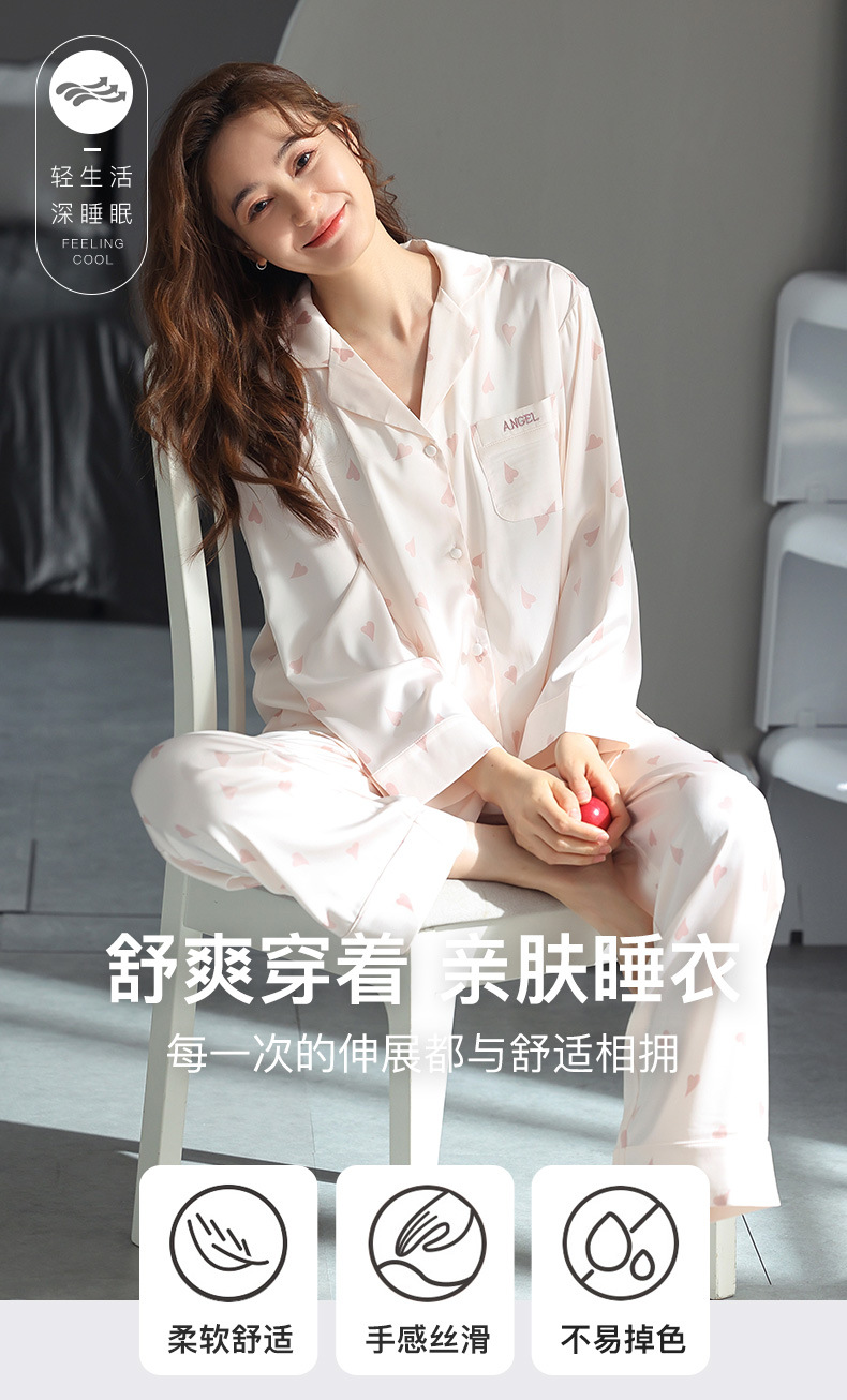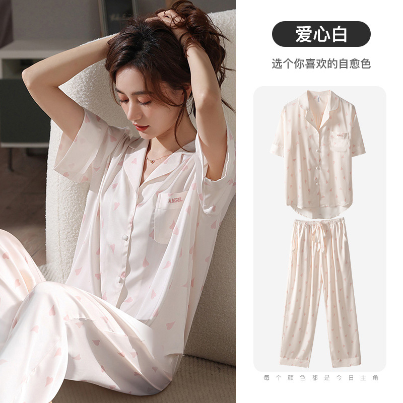 잠옷 여성 여름 얇은 쿨 아이스 실크 잠옷 귀여운 스위트 홈 옷 아내와 여자 친구를위한 여성 세트스토어 가기